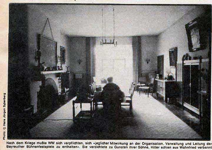 am Ende ihres Lebens war Winifred Wagner eingesperrt mit Hausverbot im Festspielhaus in ihrern Kordon mit dem Radio auf dem Tisch des Essens an den Freund aus grossen Zeiten denkend. Die Vertrauten von damals zu empfangen am Ort ihres Rückzugs /im Haus des hist. Geschehens.