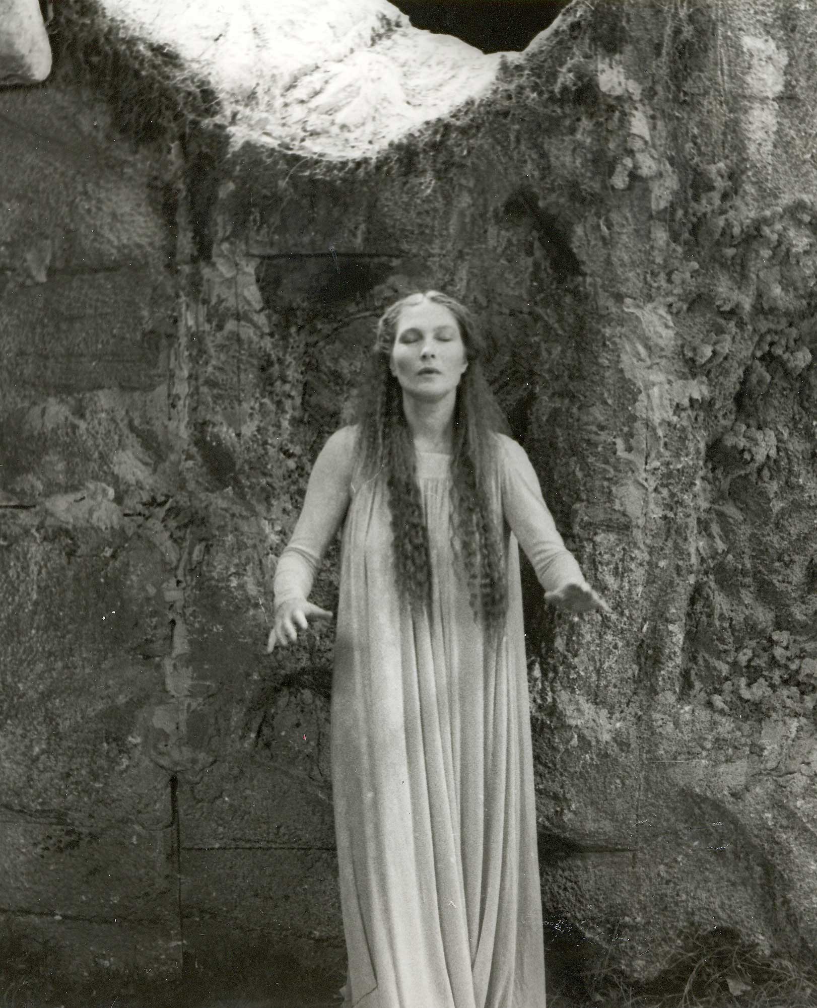 im 2. Akt von Parsifal kommen nach den Verführungsversuchen der Blumen- Mädchen die schwierig darzustellenden Dinge zusammen. Der von Parsifal verweigerte Kuss der Kundry, das Ver-Lachen des Parsifal durch Kundry, ihr Fluch, das Bannen des verfolgenden Speers.