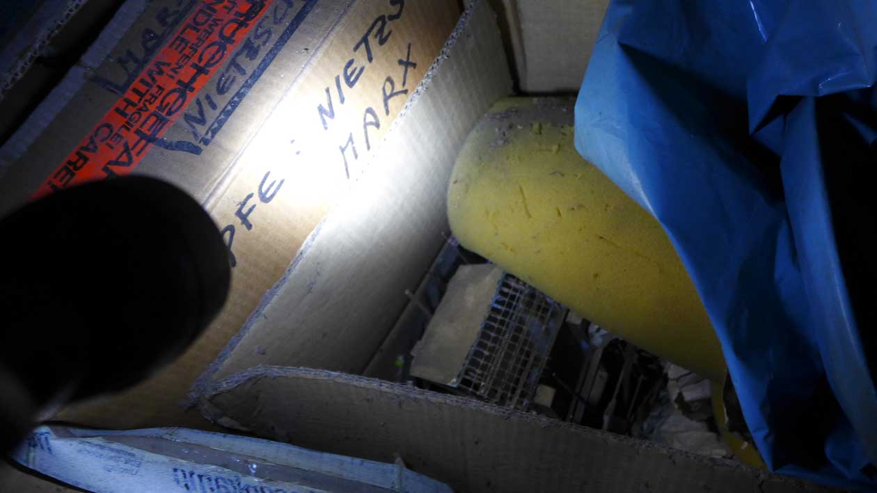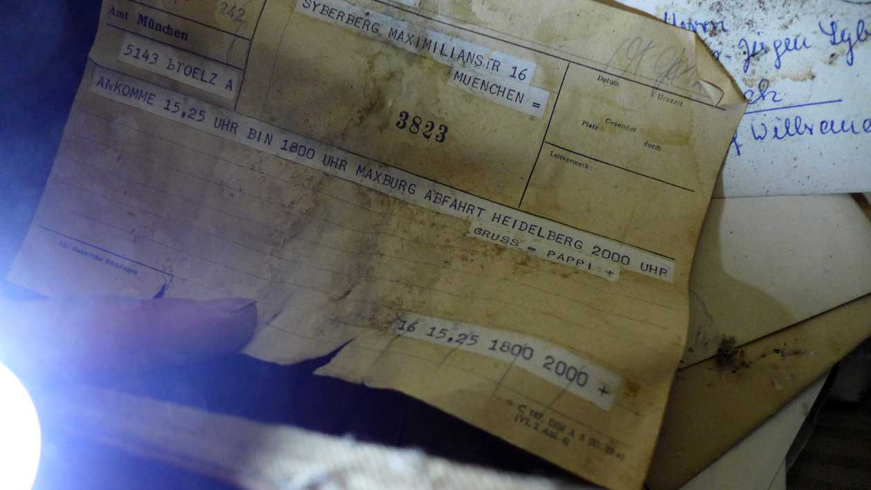 weiter durch die lange verlassenen Reste des Archivs ganz oben in München. Damals wars scghnelle <eEntlstung der unteren Räume ohne System. Heute wissen wir, es müsste geordnet werden: am anderen Ort.