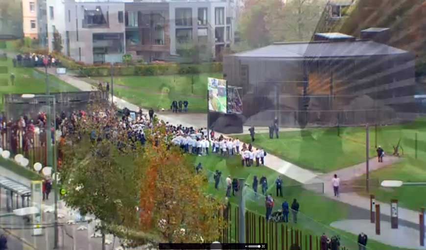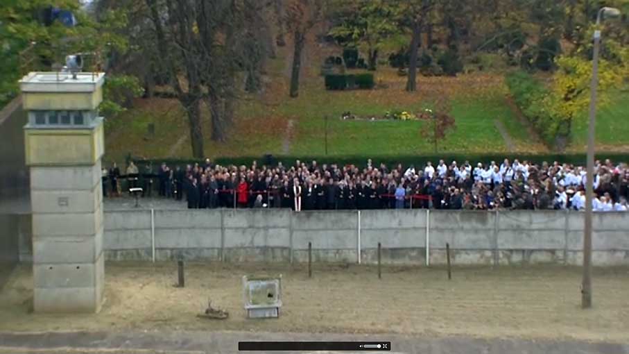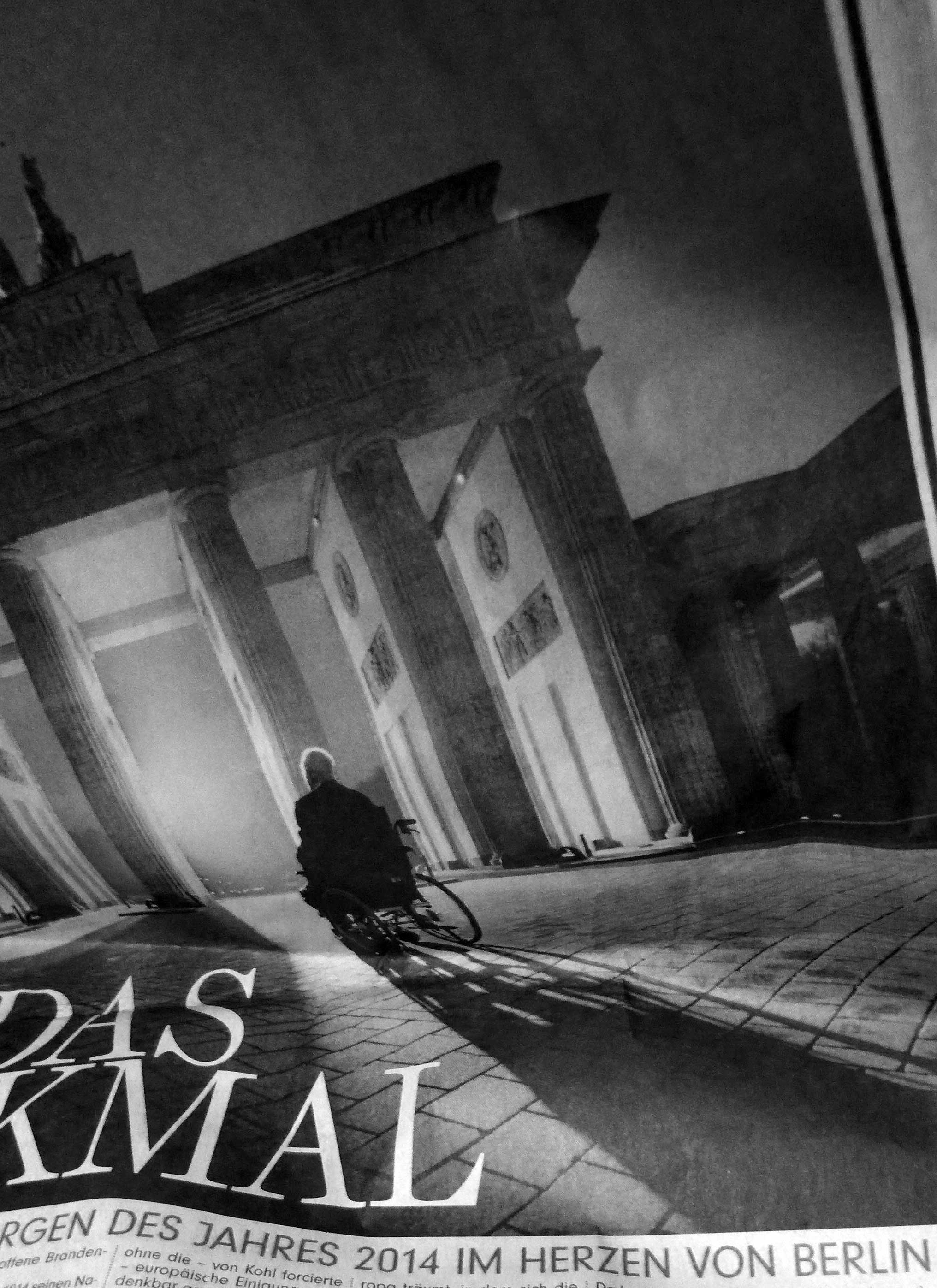 Und der Kanzler der Einheit-niemand vermisst ihn auf den Festen der Millionen, selbst am Ort des Jubel seiner Taten, im Rollstuhl wie ein nicht mehr unter ihnen Lebender irrend durch das nächtliche Tor, das nun auf ist 25 Jahre danach - so mag die Vorhölle aussehen für einen Liebhaber solcher Machtbewusstheiten.