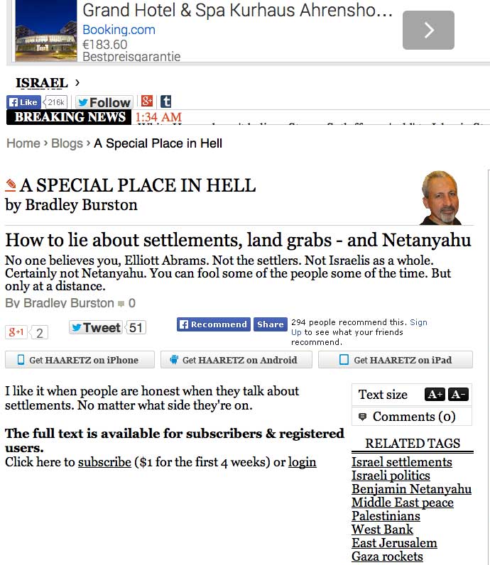 Niemand glaubt dir, Elliott Abrams. Nicht die Siedler. Israel nicht als Ganzes. Sicherlich nicht Netanjahu. Sie können einige der Leute einige Zeit zum Narren halten. Aber nur in einem Abstand.