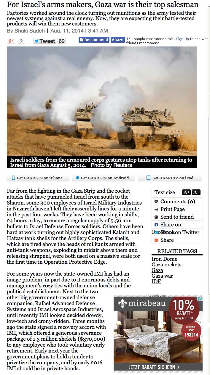 Gaza-Krieg ist eine zu melkende Kuh für die israelische Waffenindustrie.