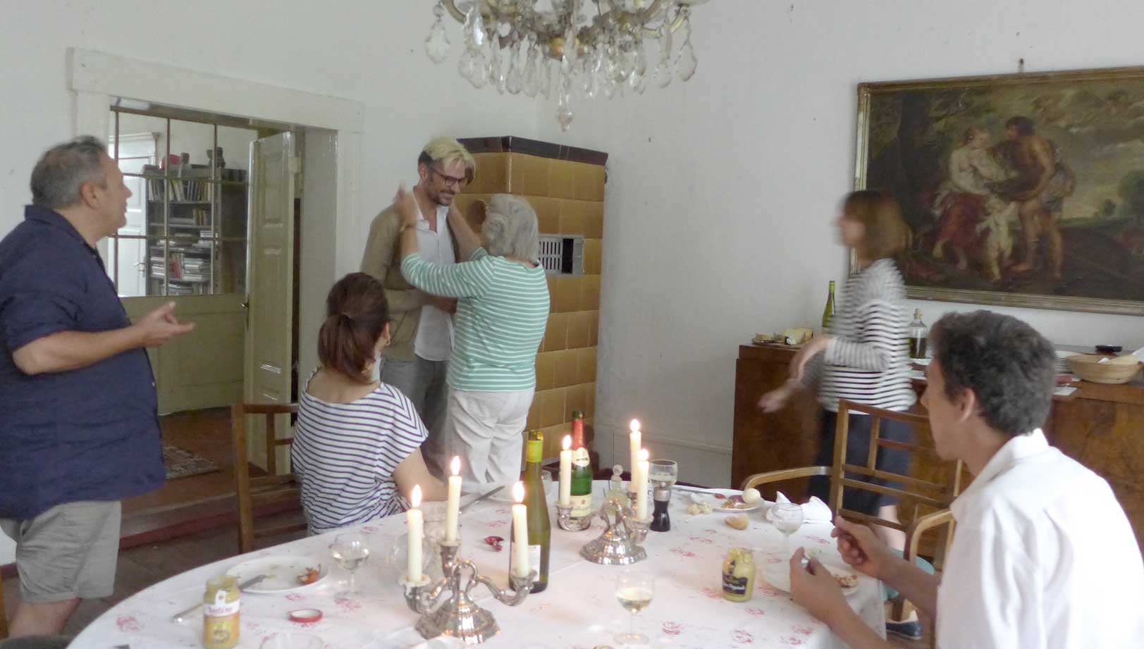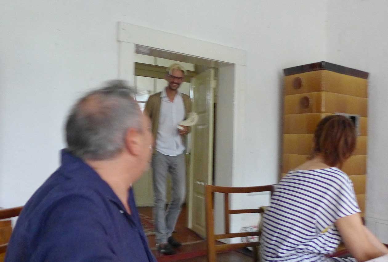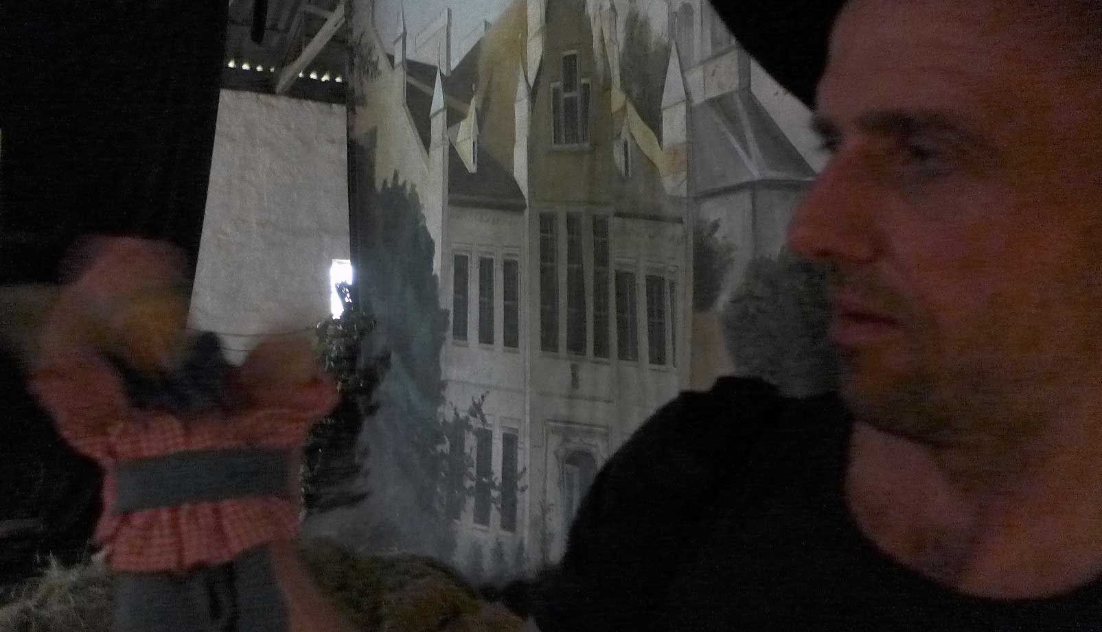 eine Puppe auf dem Platz des Dorfs, nach der Art vor 25 Jahren gekleidet, Uni-Form des Osten, fotografieren verboten nach dem Gesetz und mit dem Geld aus dem Westen, der gewähren lässt, dass Ruhe ist, alle Bäume weg und die Zäune hoch, und wie sich alle ducken, die eben noch Anderes wollten. Höre sagen, lasst dem doch seinen Turm. Wird bald so nicht mehr gehen, aber jetzt noch schnell ziehen wir es durch. Was wir jetzt nicht kiegen und nehmen, machen, dann nie mehr. Und wie der Teufel lachte.