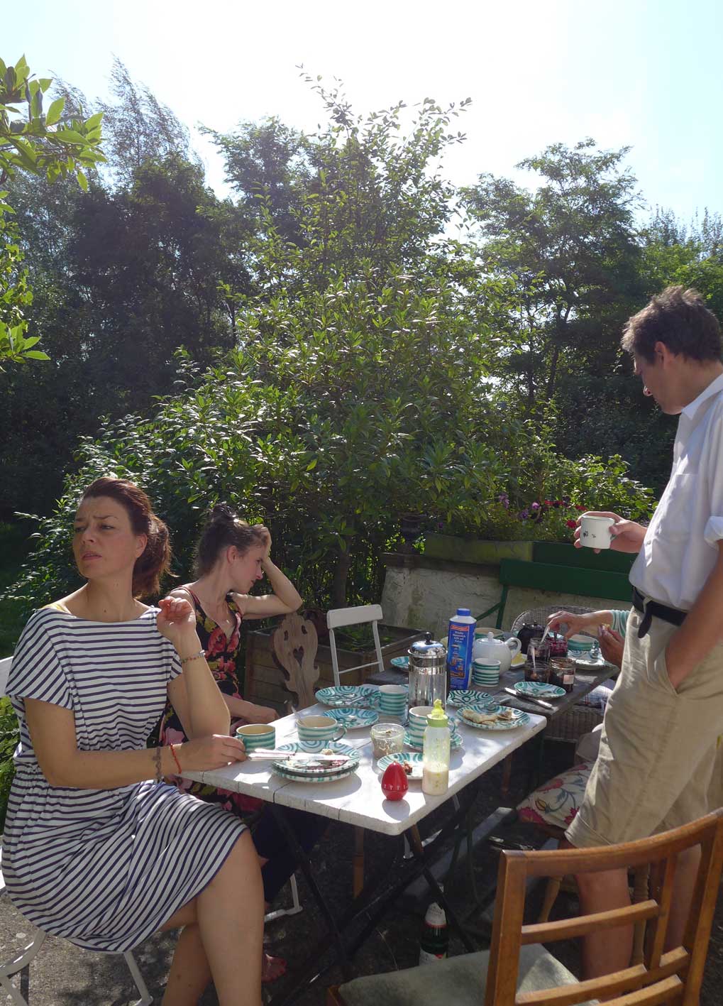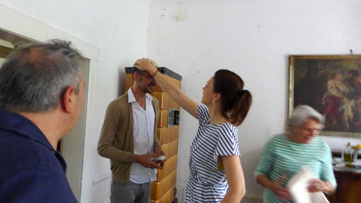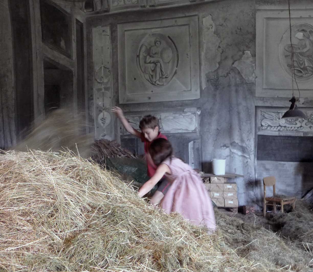 eine Puppe auf dem Platz des Dorfs, nach der Art vor 25 Jahren gekleidet, Uni-Form des Osten, fotografieren verboten nach dem Gesetz und mit dem Geld aus dem Westen, der gewähren lässt, dass Ruhe ist, alle Bäume weg und die Zäune hoch, und wie sich alle ducken, die eben noch Anderes wollten. Höre sagen, lasst dem doch seinen Turm. Wird bald so nicht mehr gehen, aber jetzt noch schnell ziehen wir es durch. Was wir jetzt nicht kiegen und nehmen, machen, dann nie mehr. Und wie der Teufel lachte.