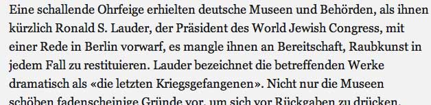 Alle Kunst die von den Nazis verfolgt wurde ist jüdische Kunst der Auschwitz-Ara und ist zurückzugeben.