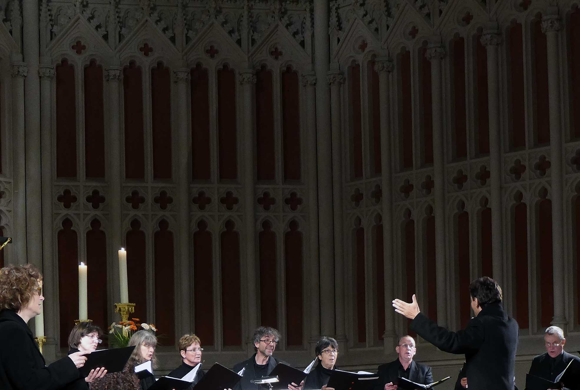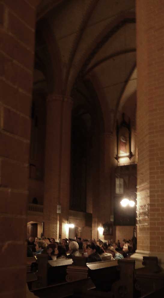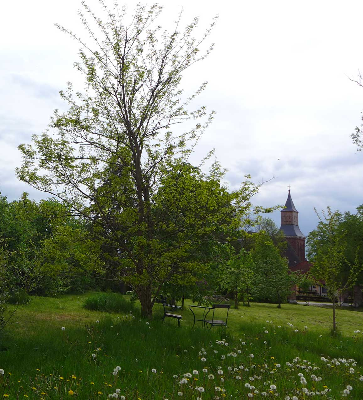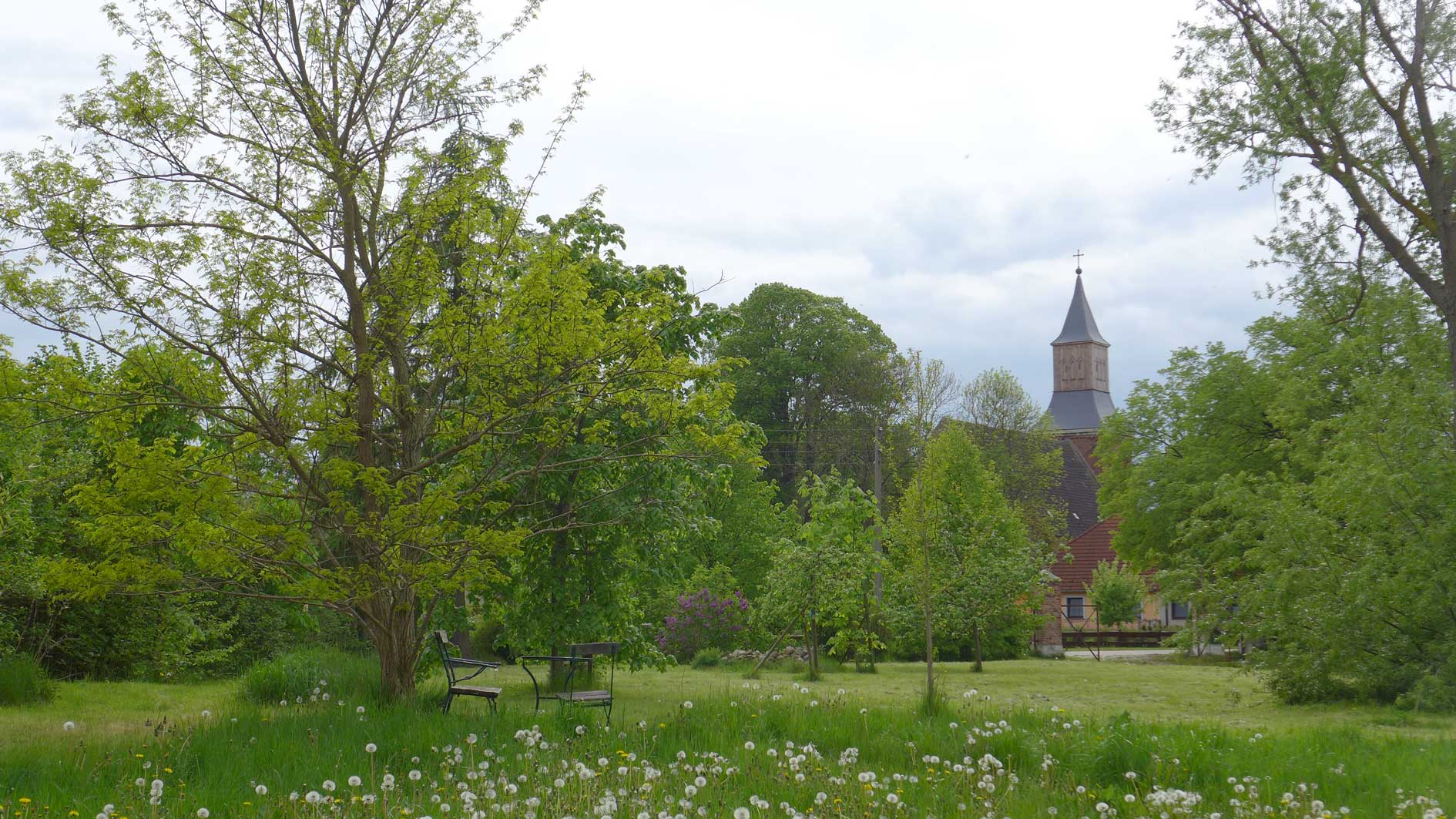 die Mai-Andacht unter Glocken und Turm in Nossendorf am Tag darauf