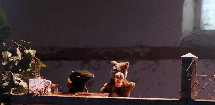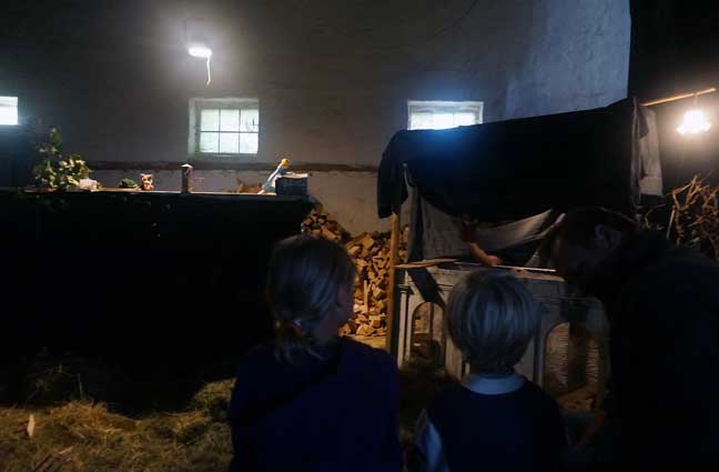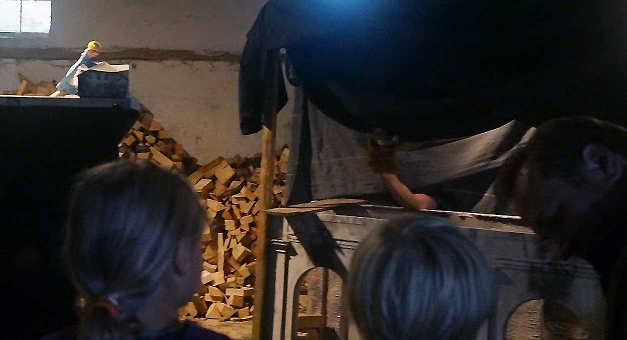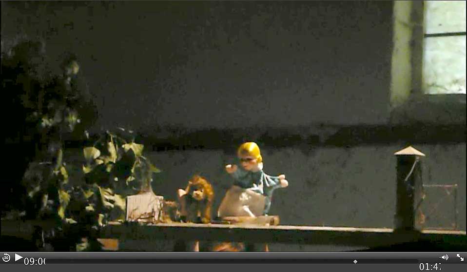 Puppen hier seit Pocci in seinem untergehenden Schloss am Starnberger See und Faust und Kleist hier auf unsere Weise zuhaus bis Hitler und Richard Wagners Parsifal im Film. Na denn man tau in Nossendorf der Scheunen nun im Heu live.