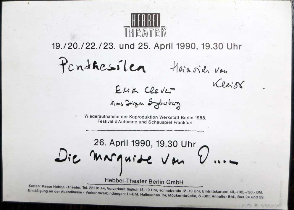 Vom Film gelernt. Das Licht der Bühnen. Aus dem Bühne-Raum. Die Gegenschnitte in der PENTHESILEA zum erstenmal mit anderen Figuren und Chören allein auf der Bühne sie seiend, erleichterten die Phantsie der Zuschauer zu folgen und ihr zu sehen, was sie dann selbeer ist. Dazu den Blick des Autors auf alles. Diese Perspektivwechsel unter Verzicht und das Wissen vom Mummenschanz und Maskenwesen und des Zuaberstabs der fremden Studions oder eigener Projektionswelten erst machte sie zu der eigenen Welt, die sie so erst wurde, was auch ohne Sprache und durch Stunden überall gelang. Ein Welthetater des Films unserer heutige Gedankenmöglichkeiten.Alles andere lang weit hinter uns.