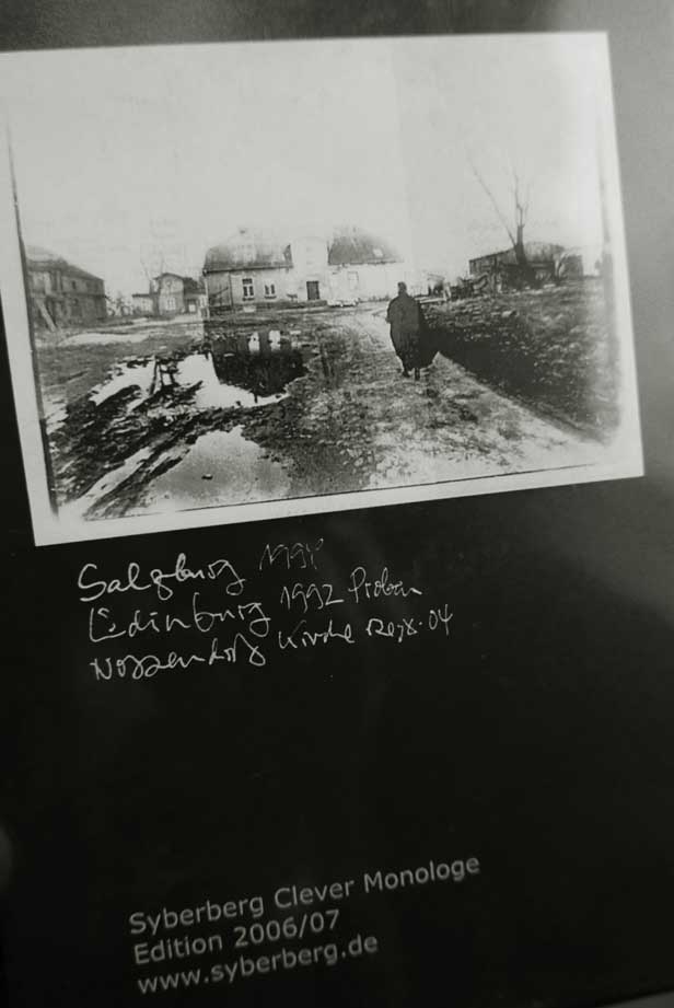 Die Wiederherstellung des Gesagten, als Spielweise eingebunden, versucht das Provkante und den Alltag darin zu kommentieren, die Momente für die wir das machen. Zusammen wäre alles dann wohl 30 Minuten und immer offen im Fluss, ohne Schnittgewalt. Das Preussische eher als Kargheit verstanden mit wenig Mitteln viel zu tun. In einem Menschen alles. Das ganze Theater. Der Welt - auch als Film.
