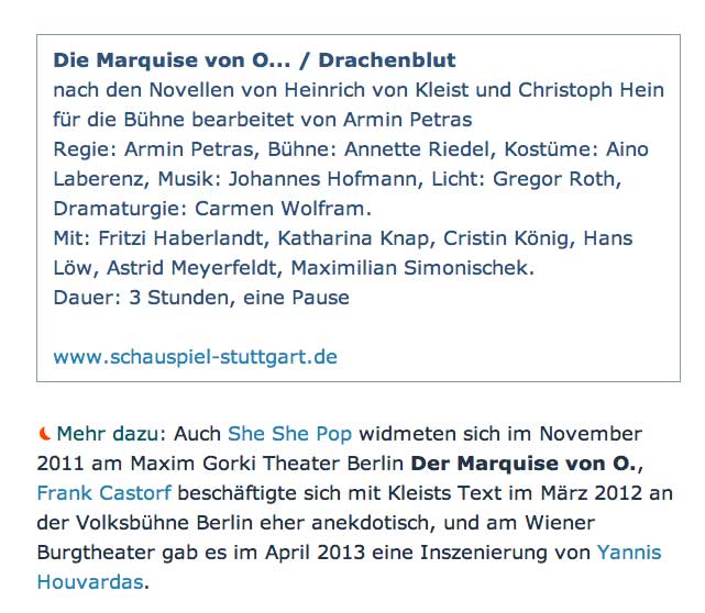 Marquise von O.../Kleist nun in Stuttgart mit andem Text zusammen 3 Stunden,,