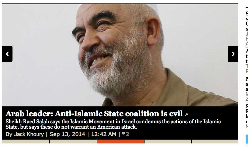 the head of the Northern Branch of the Islamic Movement in Israel, attacked the ten Arab countries that expressed support for the operation the United States is planning against the Islamic State. According to Salah "It is a coalition of evil aimed at destroying what's left of Syria and Iraq, and...