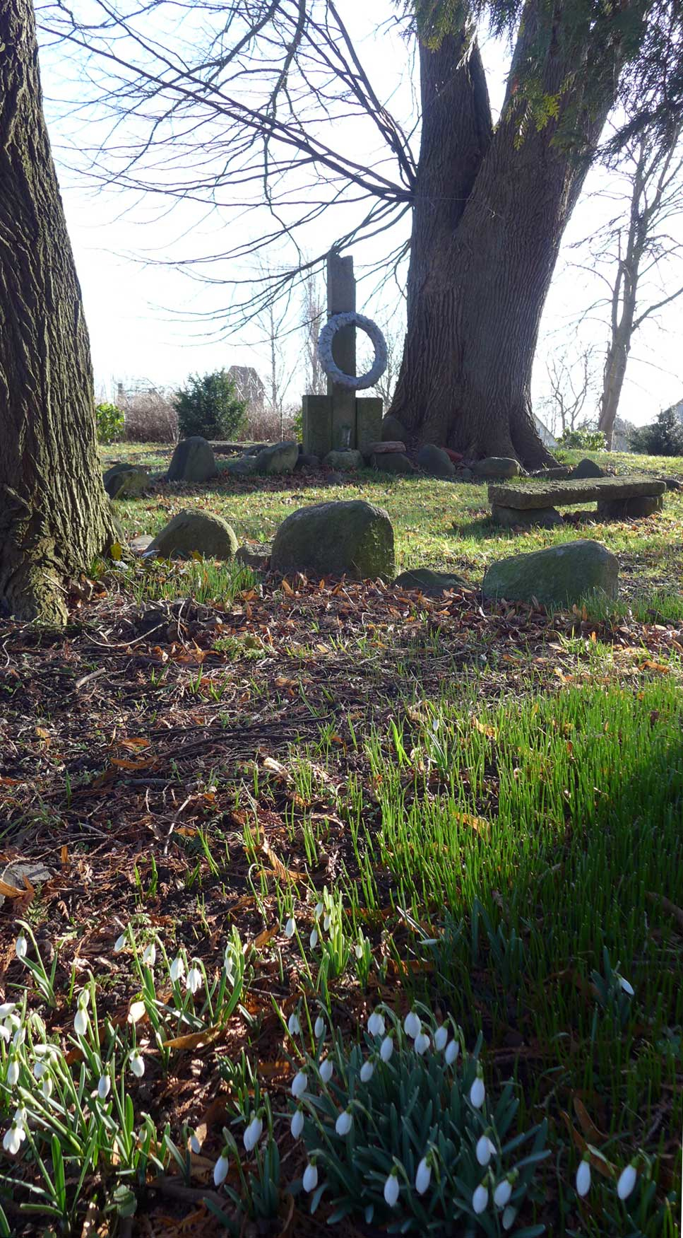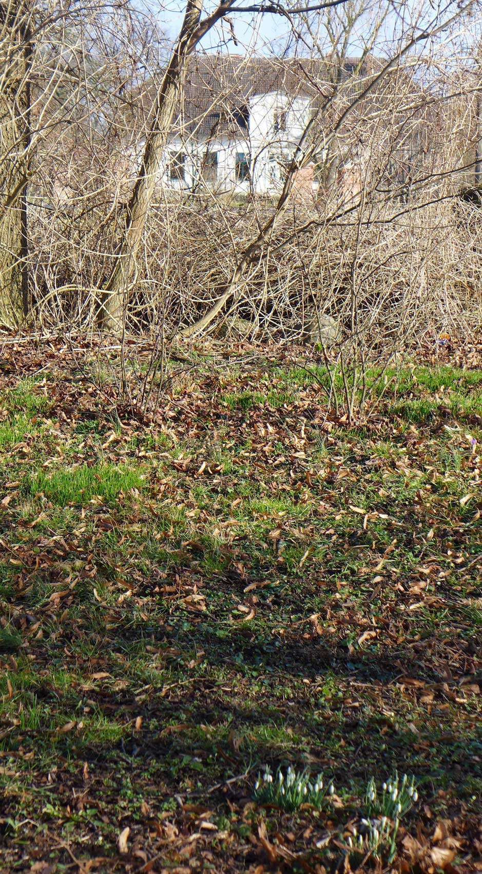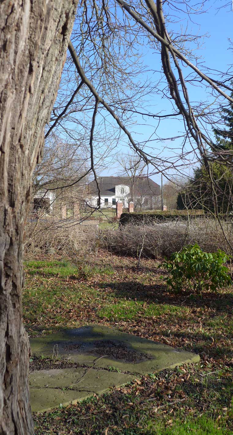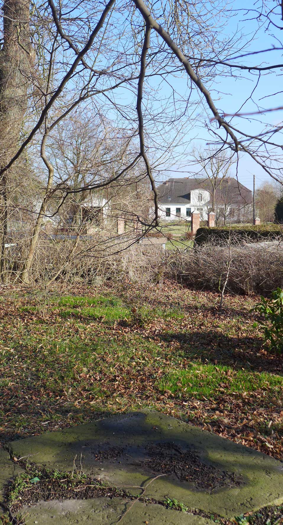 wenn mans gut macht und will, kann man von den Gräbern aufs Haus schauen des Lebens. jetzt wenn die Blätter noch fehlen. So hatten sie früher das Haus zugeordnet sich..