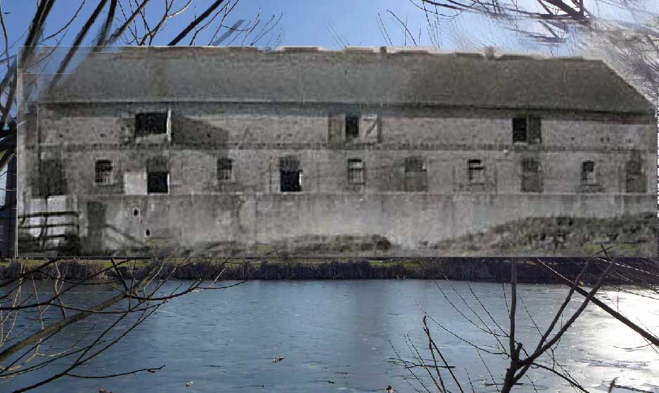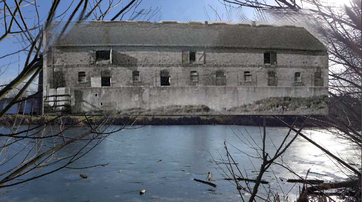 zusammen montiert aus alten Fotos an den Teich heute, siehts dann so aus. Davor der Weg am Ufer zur Trebel.