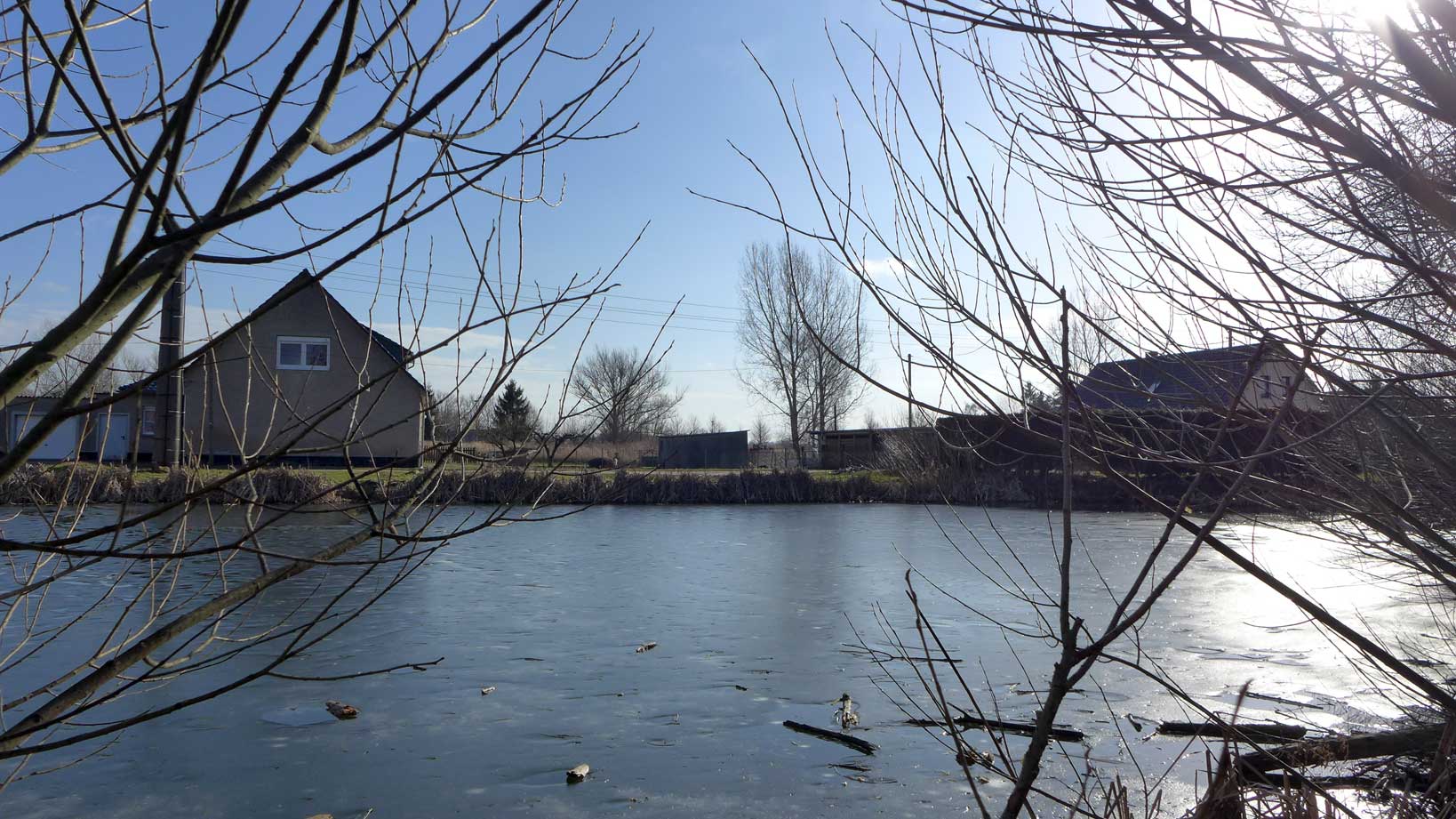 Und ich hören, dass die beiden Häuser dort drüben früher Eckteile des grossen Stalls waren uns immer hoch und schwarze, gewaltige Schiffe am Rande der Blicke auf dem Teich im Winter und im Fühjahr vor dem Sommer vor der Trebel, im Wasser beim baden.