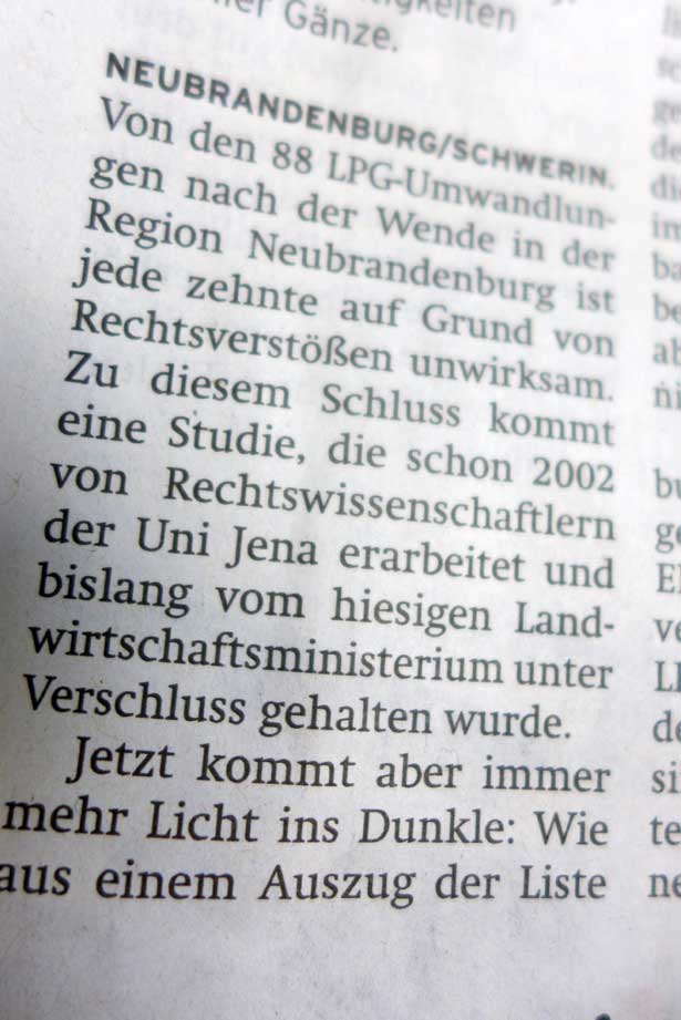 jetzt wissen wir auch, warum in Nossendorf die Gemeinde-Vertretung wieder von der alten LPG-Führung übernommen werden musste. Bestandsicherung wird man so nicht gewinnen.