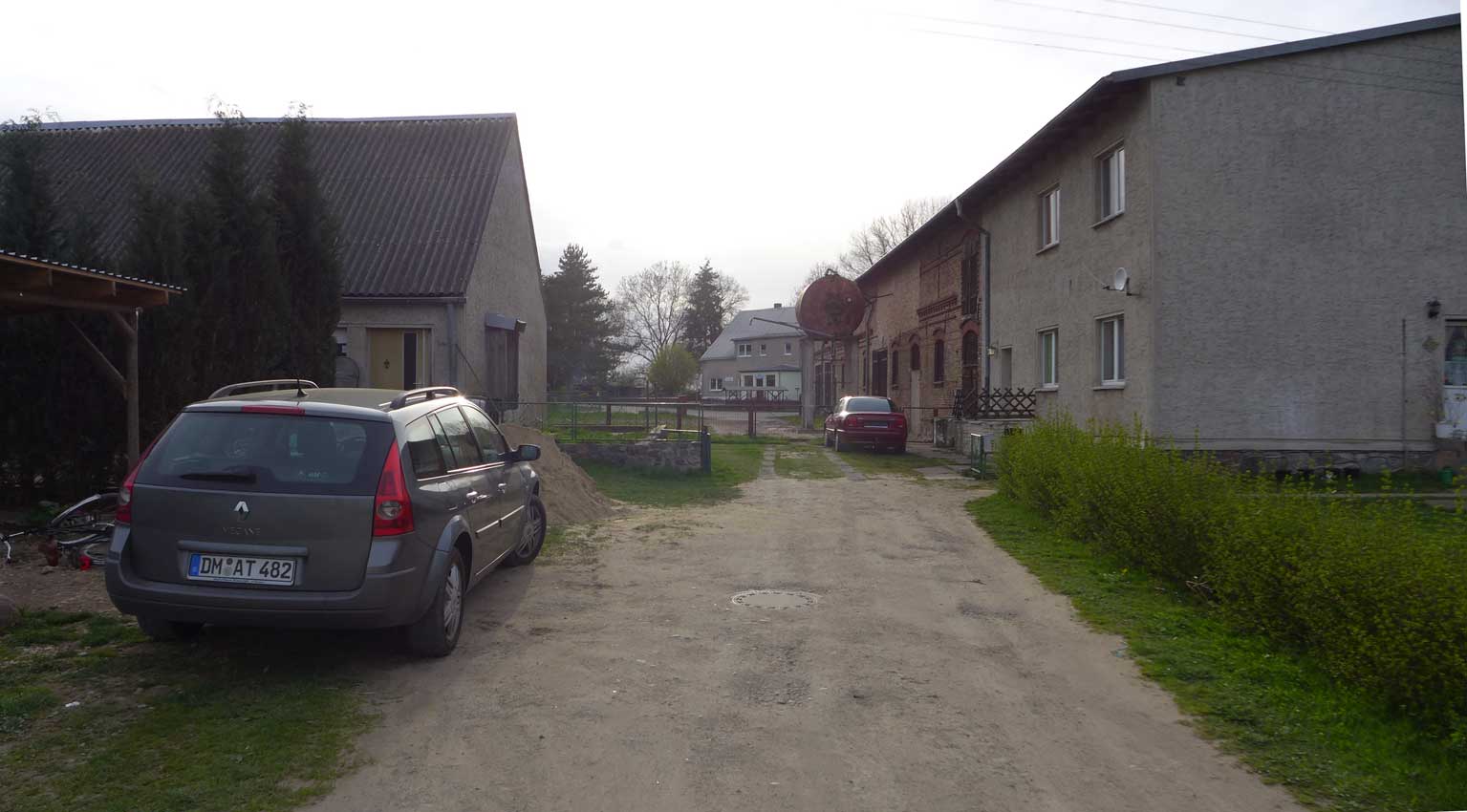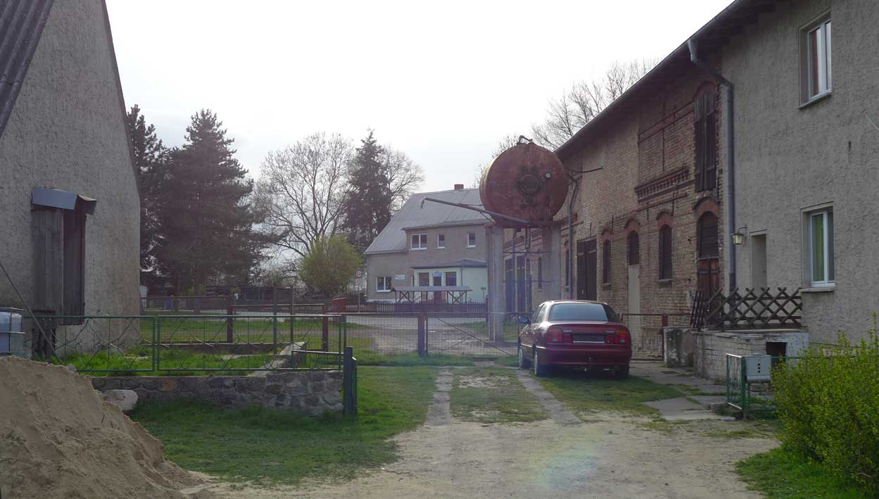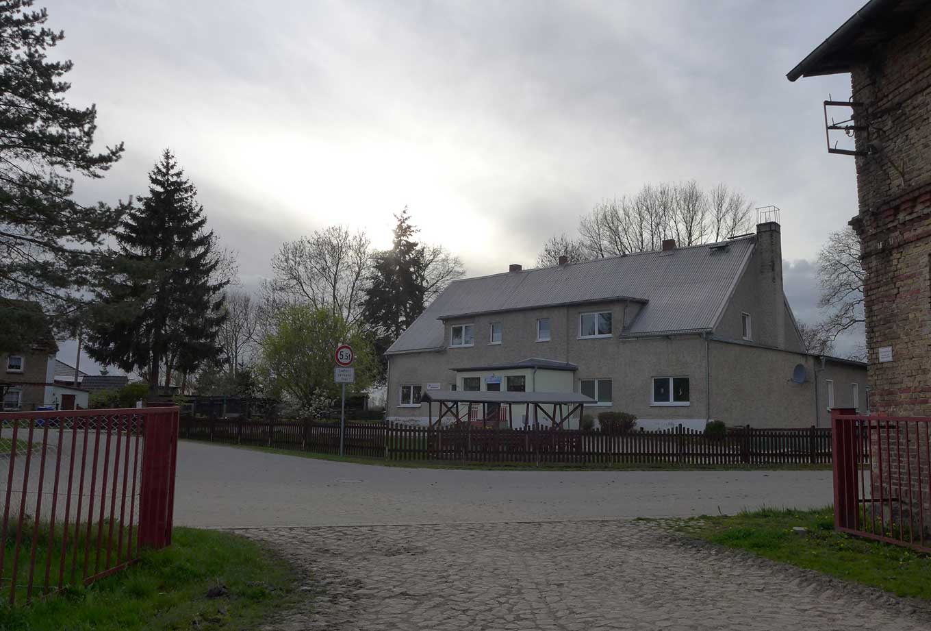 Blick auf das ehemalige Gutshaus des Hamann'schen Hofs. Jetzt N. Henke unter Verantwortung. Hinten das was sie Kita nennen.