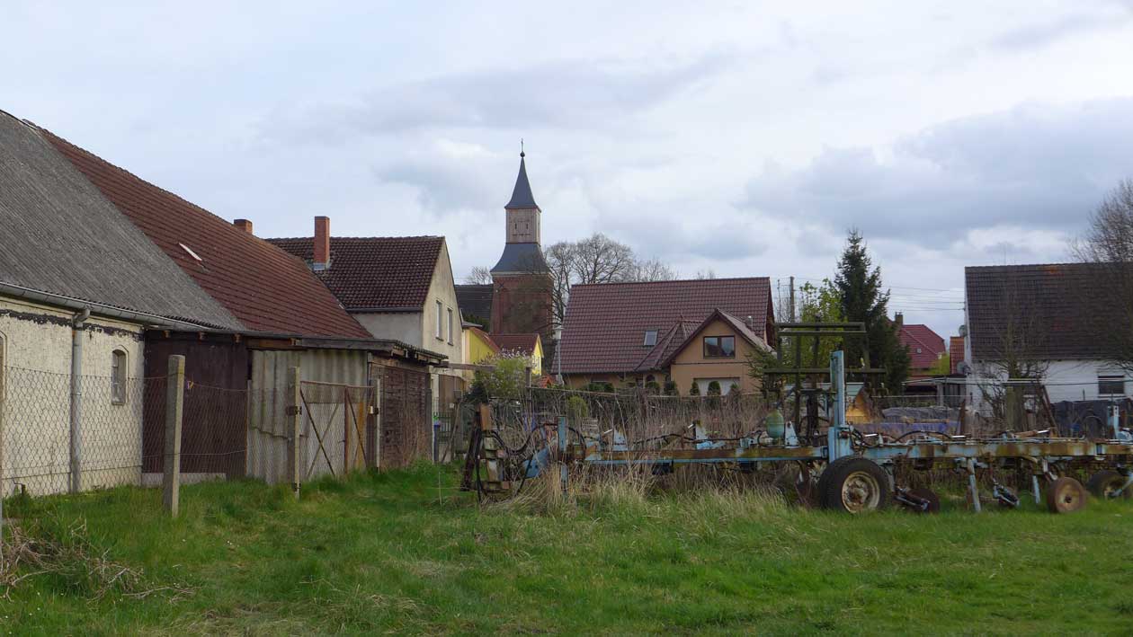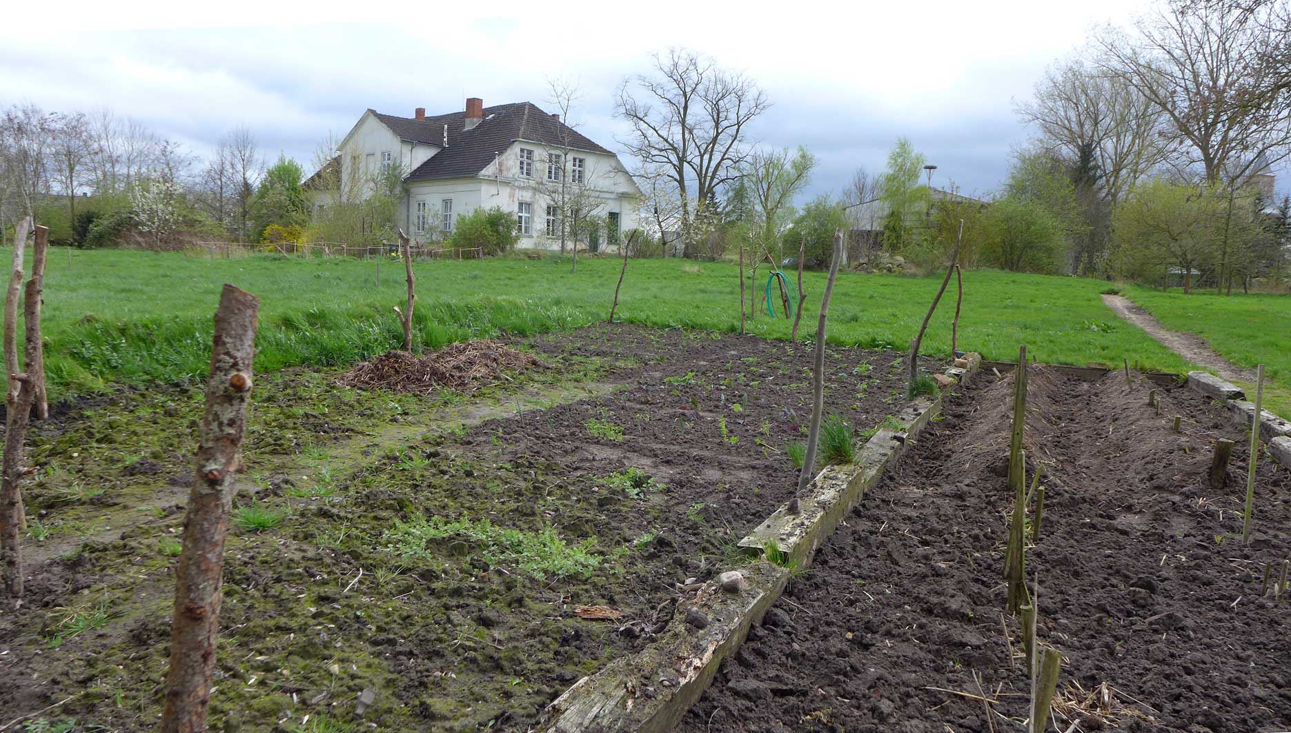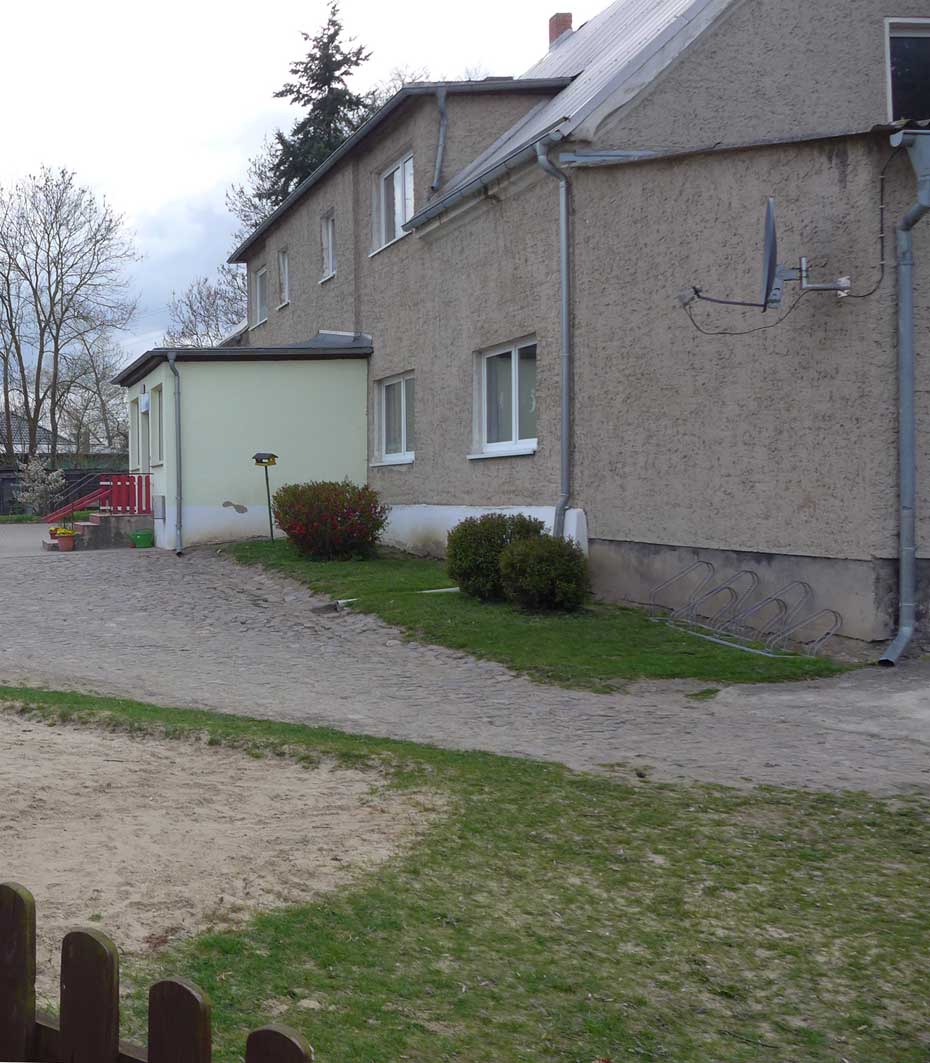 Blick auf das ehemalige Gutshaus des Hamann'schen Hofs. Jetzt N. Henke unter Verantwortung. Hinten das was sie Kita nennen.