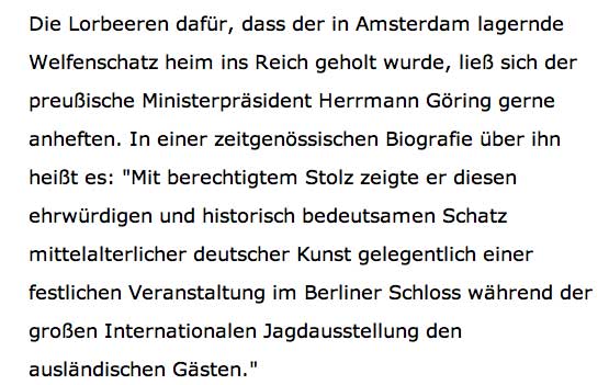 Das steht doch im Artikel... Die Welfen waren wegen Besteuerung in Österreich in Geldnot und haben daher den Schatz an jüdische Kunsthändler verkauft, die damit ein riesen Geschäft gemacht hätten, wenn nicht 1929 dazwischen [...]▼