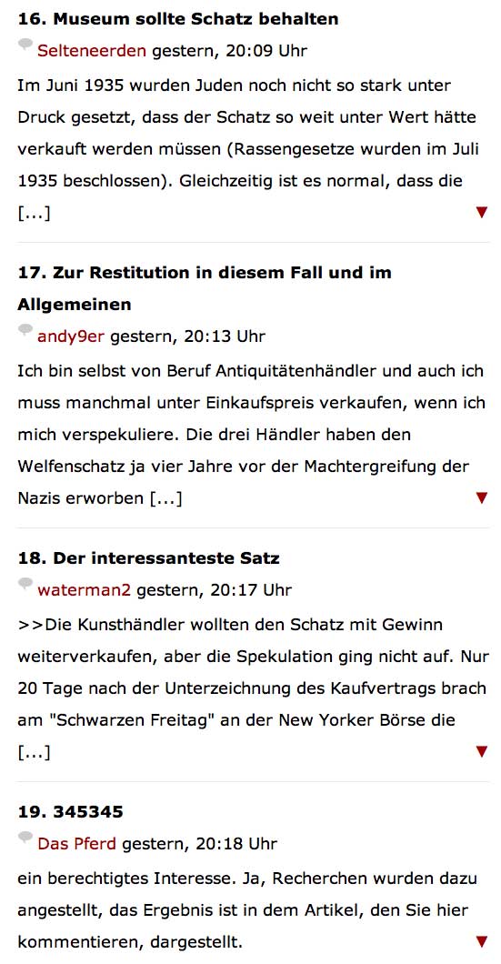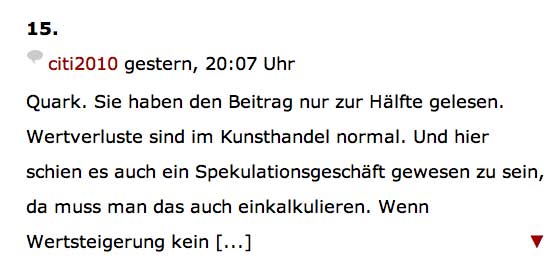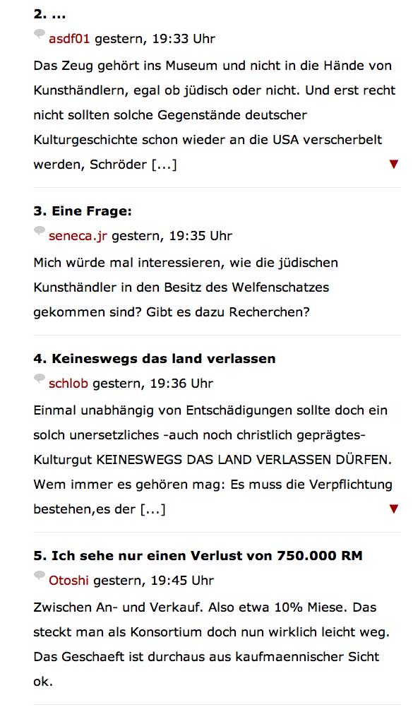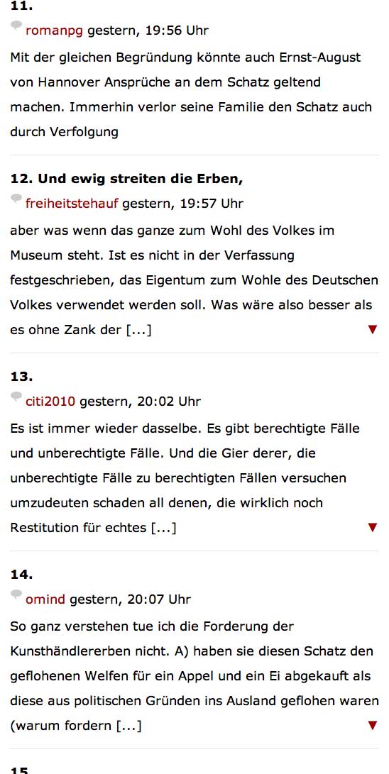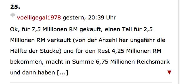 im Ausland, die Verkäufer im Ausland....vielleicht war (wie schon beim Fall Gurlitt) nicht jeder Kunstverkauf automatisch ein Raub oder ein Verfolgungsverbrechen. Ach ja....man könnte auch argumentieren: Durch die [...]▼