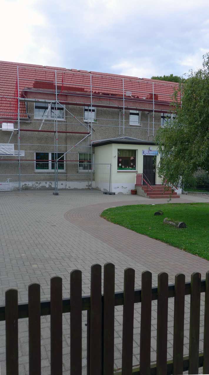 Kita Nossendorf mit neuem Dach auf altem DDR-Haus.