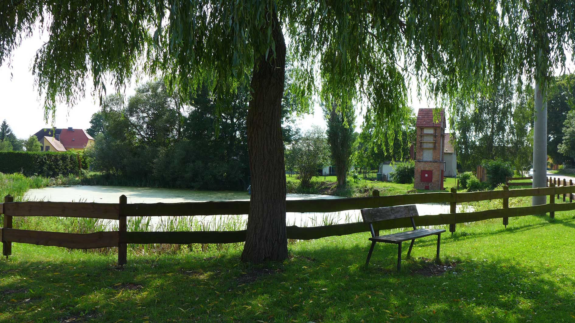 vielleicht wird auch einmal die Bank so stehen wie in aller Welt : nicht mit dem Rücken zum Teich. Aber auch Welt-Gelächter ist ganz schön.