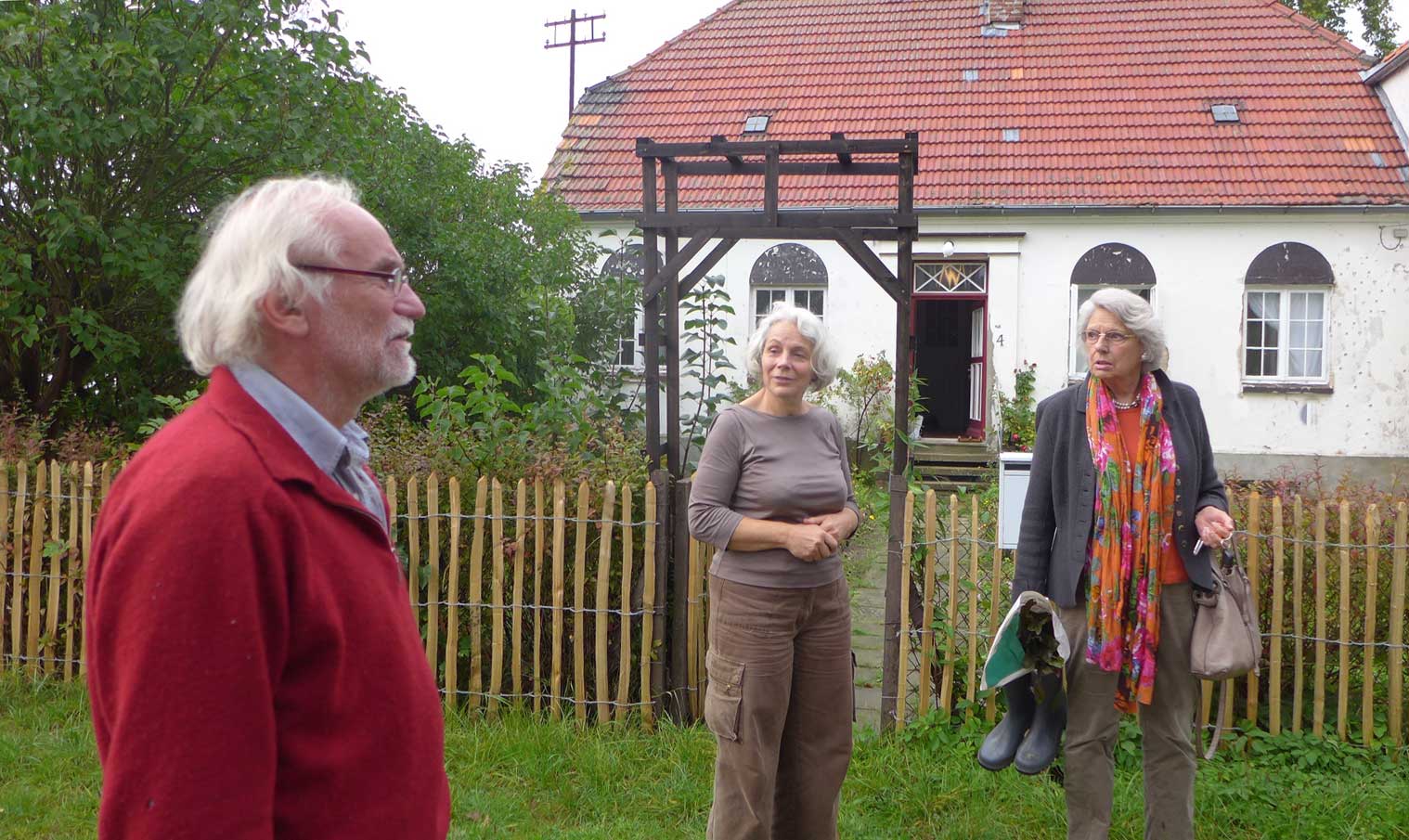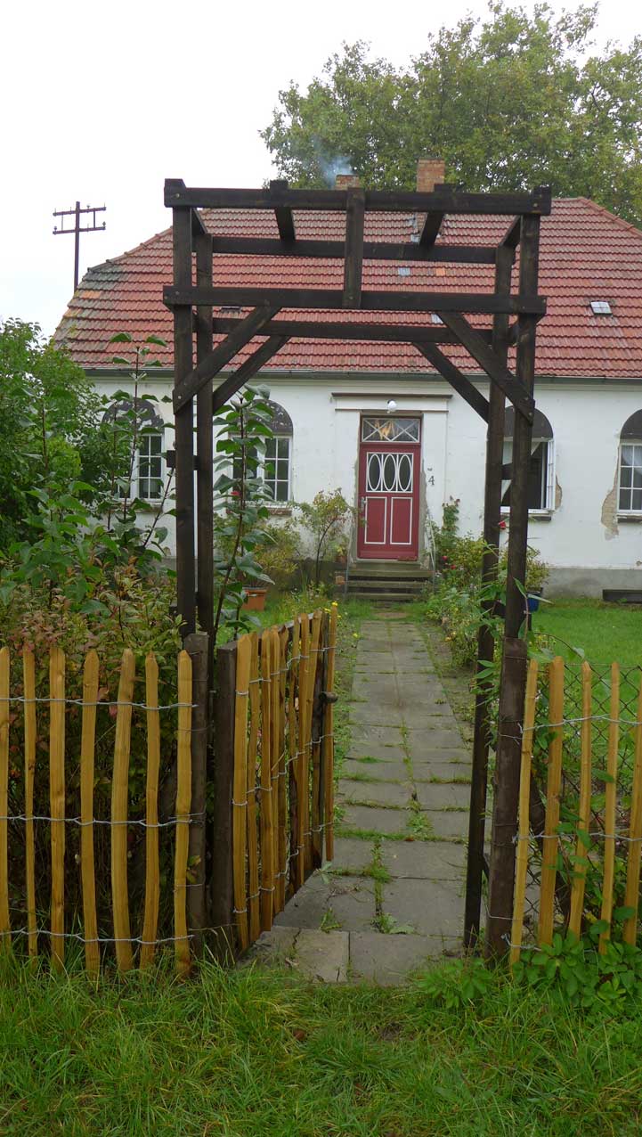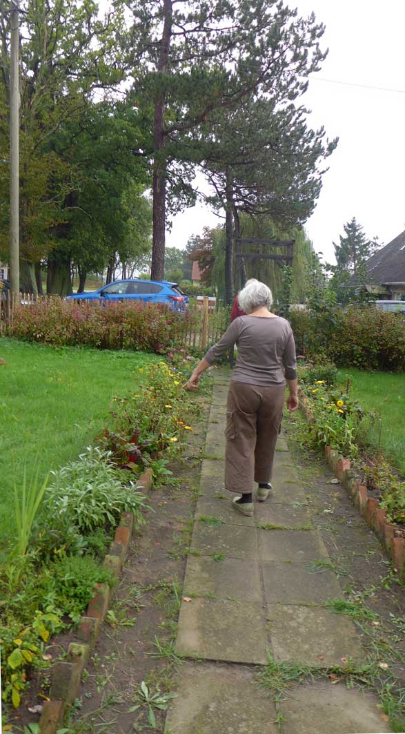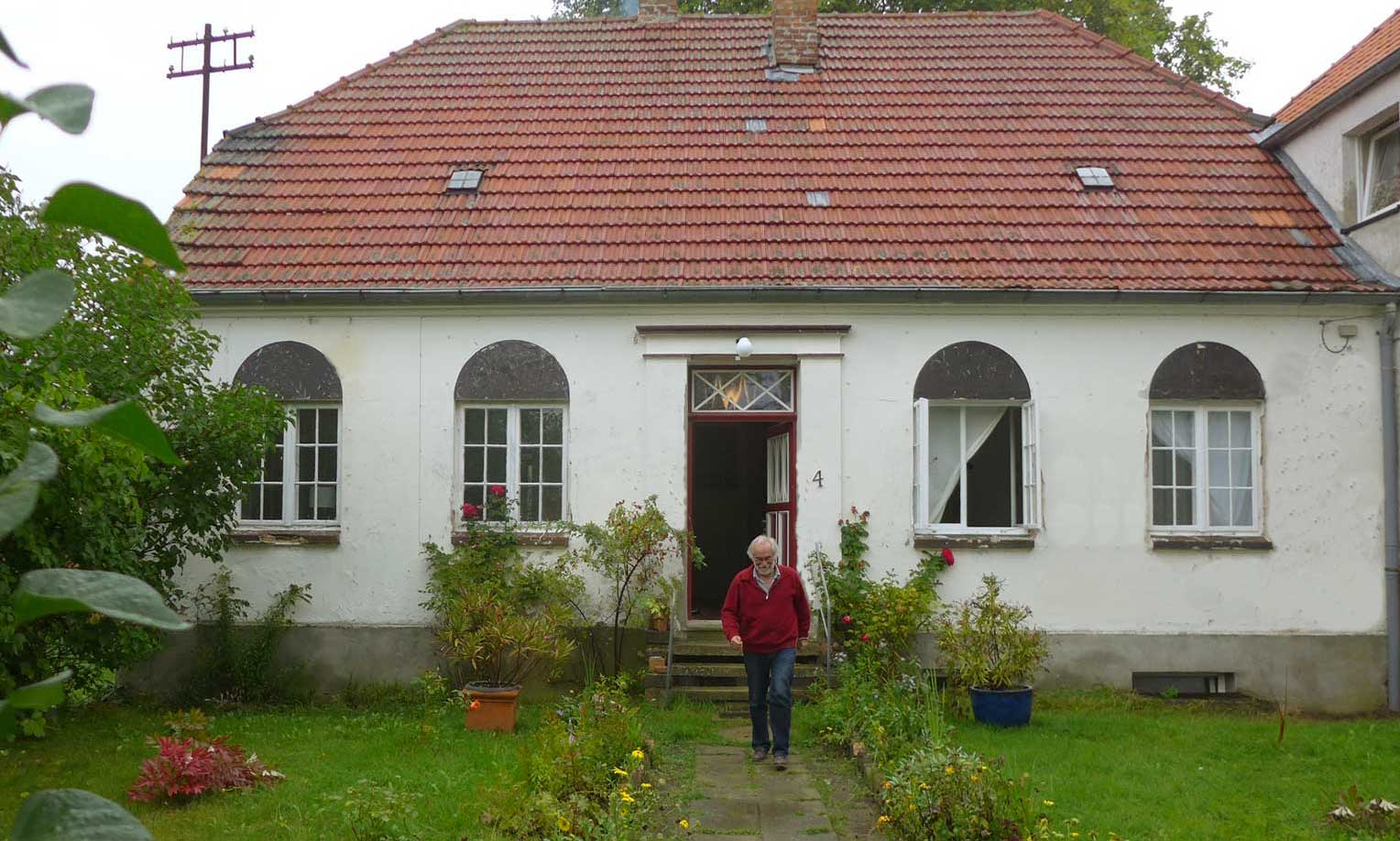 unten auf dem Wege von Ahhenshoop in seinem neu rest. Haus am Bodden. In nun fortgeschrittenem Stand der Bewohnbarkeiten.