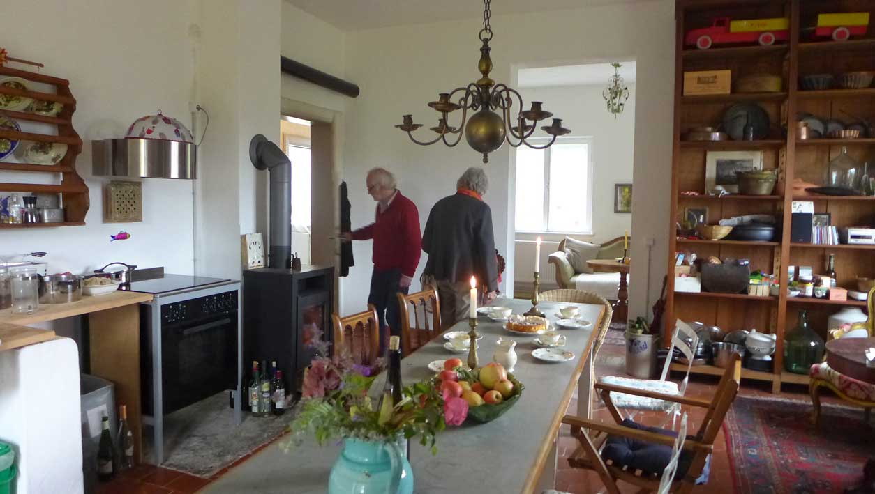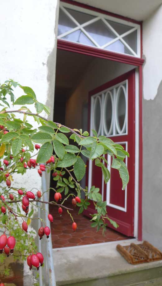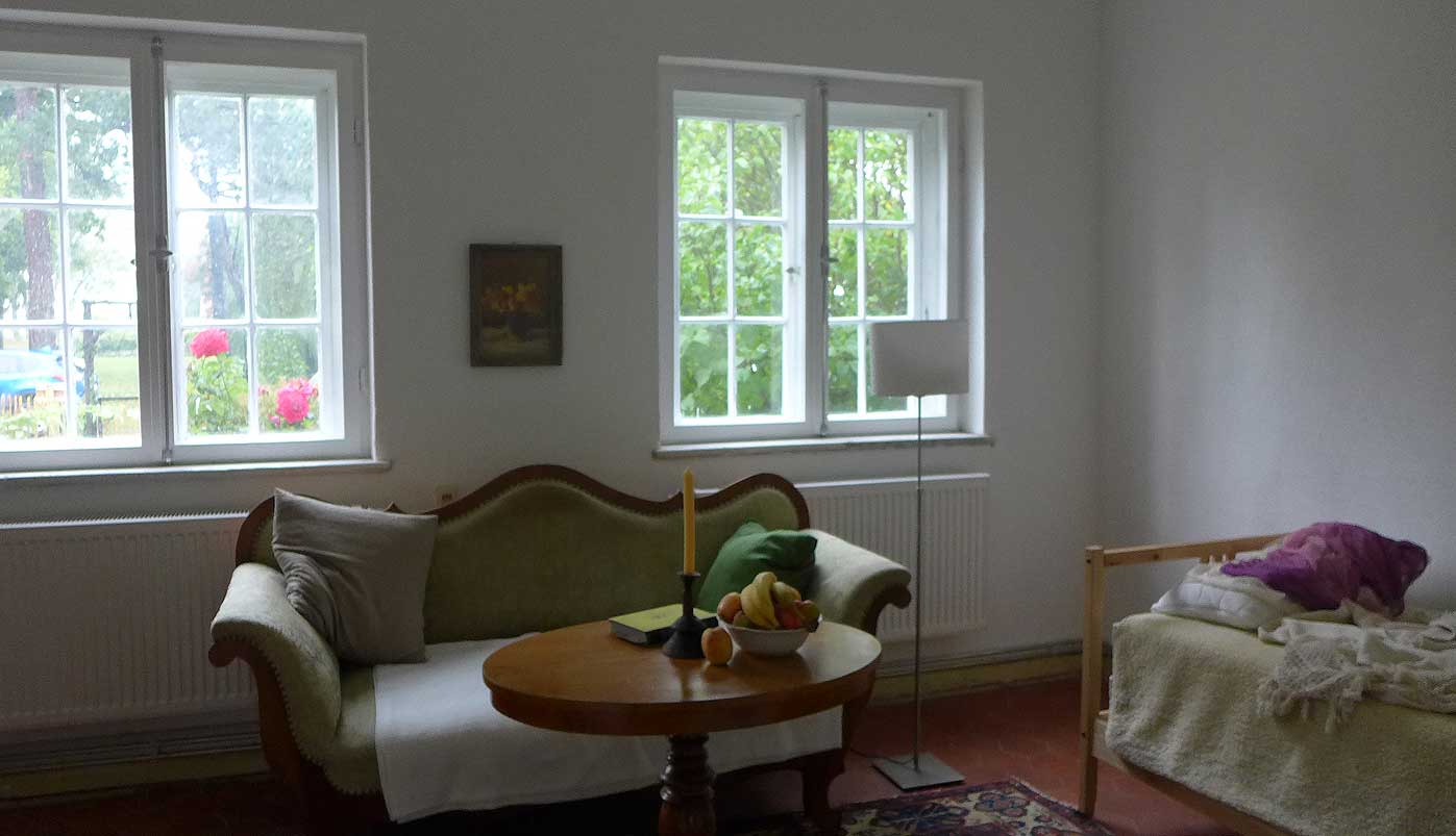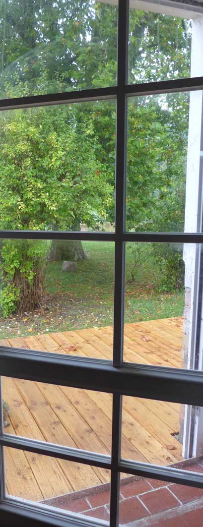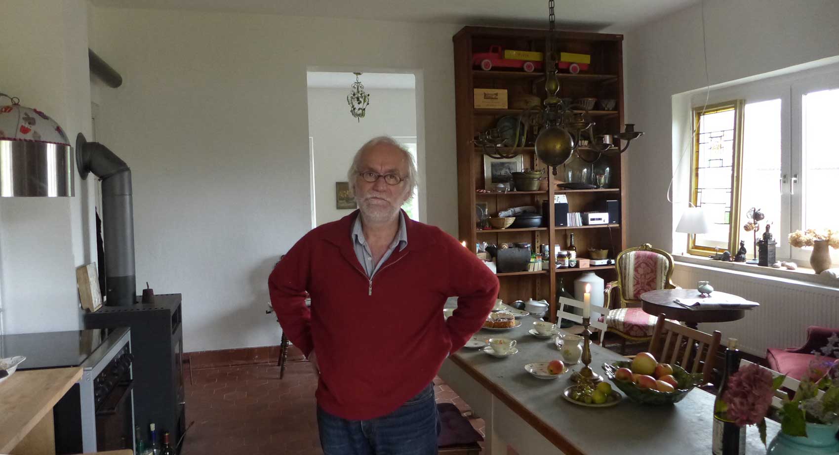 unten auf dem Wege von Ahhenshoop in seinem neu rest. Haus am Bodden. In nun fortgeschrittenem Stand der Bewohnbarkeiten.