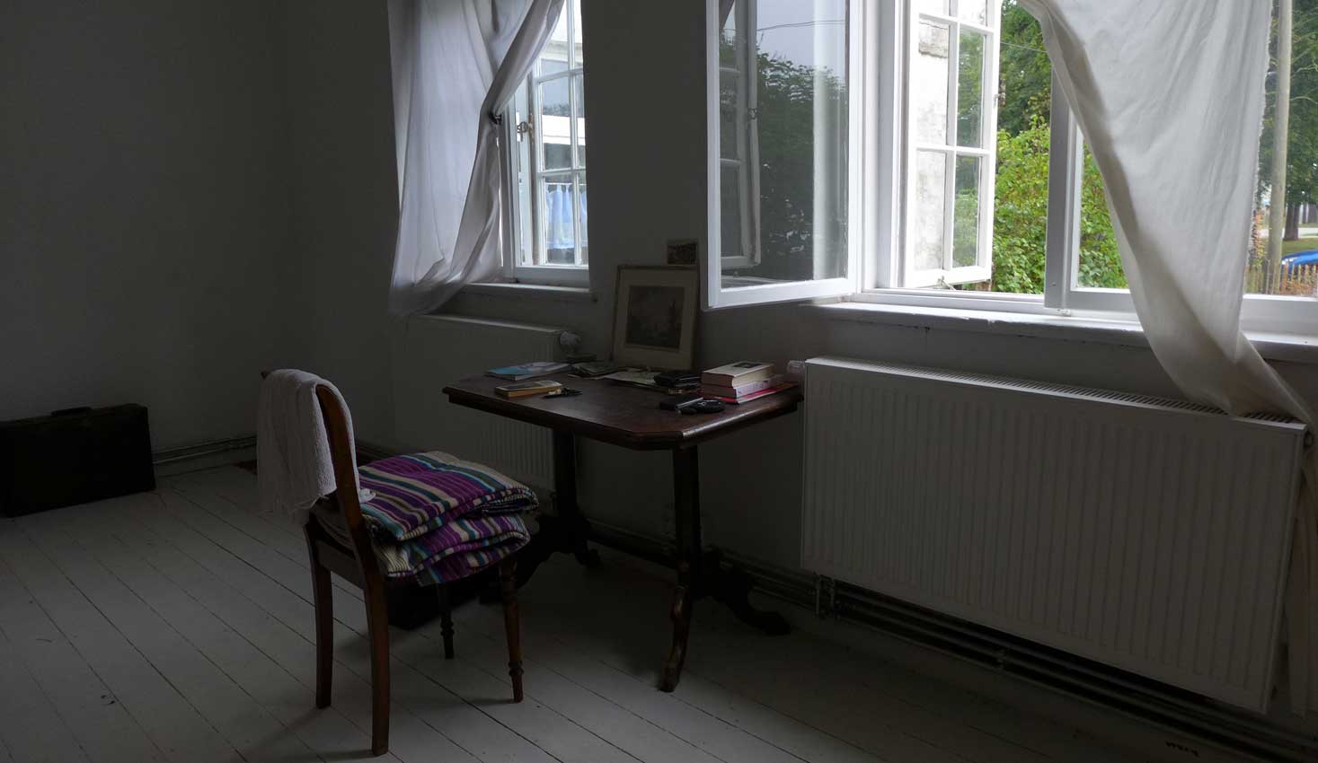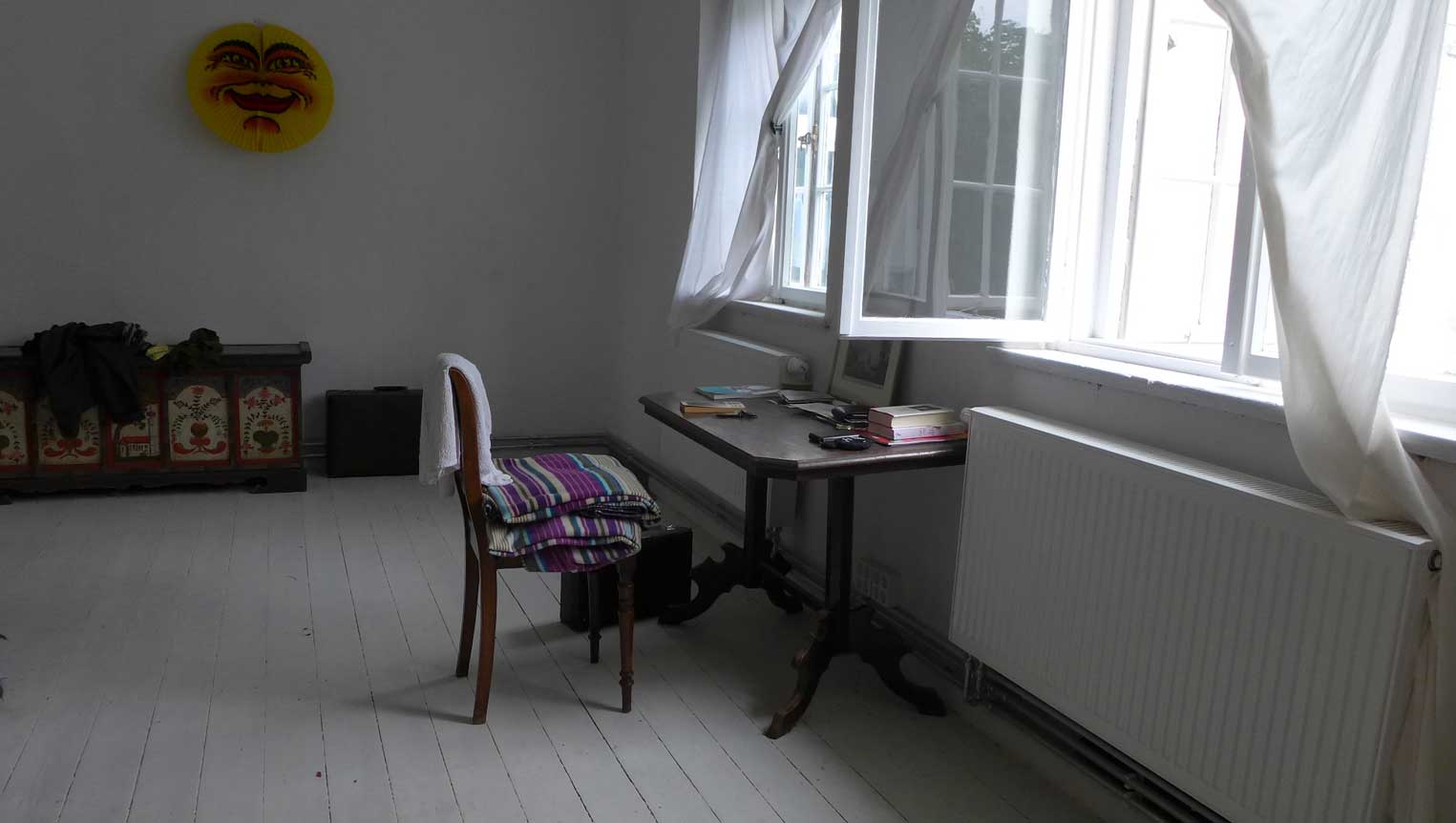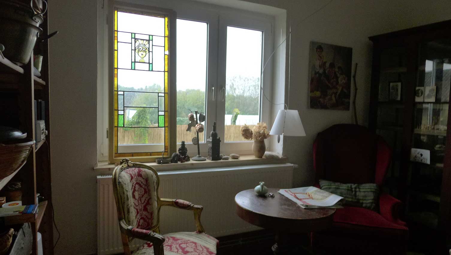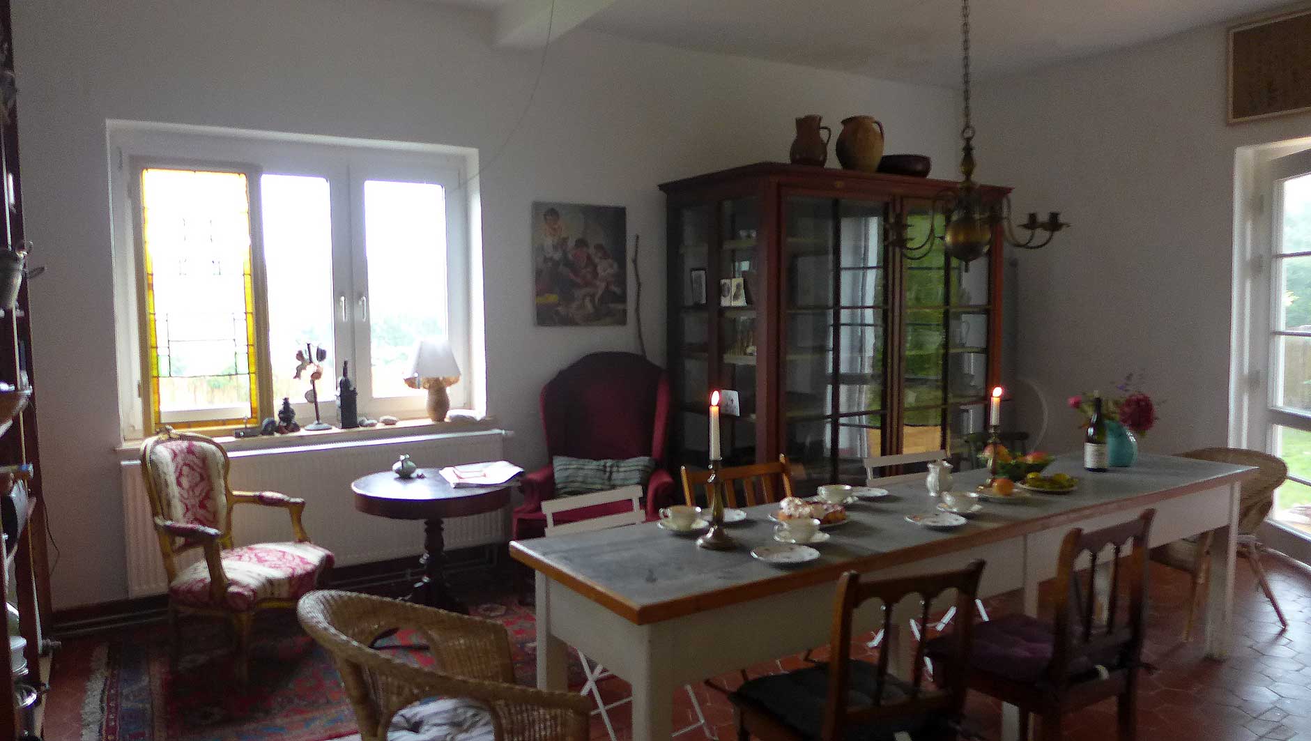 unten auf dem Wege von Ahhenshoop in seinem neu rest. Haus am Bodden. In nun fortgeschrittenem Stand der Bewohnbarkeiten.