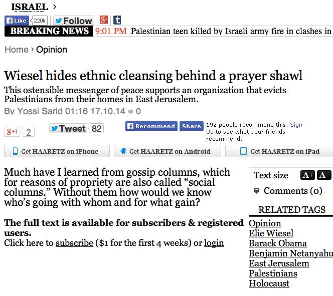 Elie Wiesel versteckt eine ethnischen Säuberung hinter einem Gebetsschal