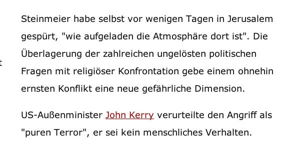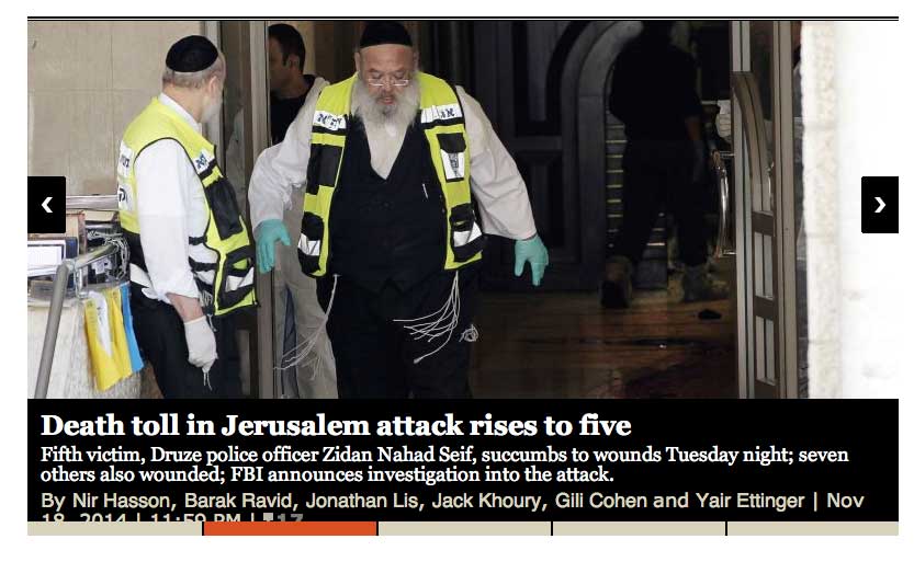 Jerusalem (dpa). Nach dem Synagogen-Anschlag in Jerusalem wächst die Sorge vor einer Zuspitzung des Nahost-Konflikts. Israels Ministerpräsident Benjamin Netanjahu sieht sein Land in einem «Kampf um Jerusalem». Er kündigte eine rasche Zerstörung der Häuser der beiden Angreifer von gestern sowie früherer Attentäter an.
