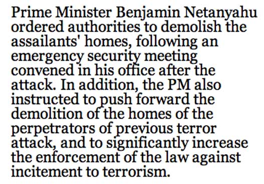 Er kündigte die Zerstörung der Häuser palästinensischer Attentäter an