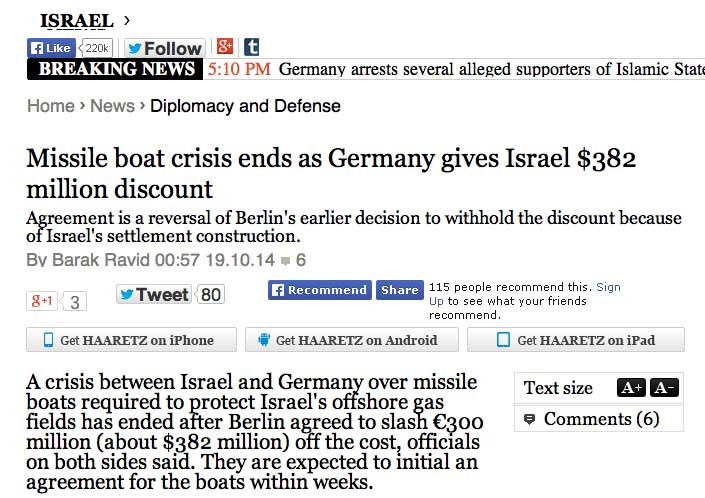 Raketenboot Krise endet, wie Deutschland gibt Israel 382.000.000 $ Rabatt