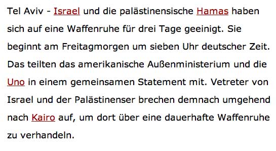 Ungeachtet der immer schärferen internationalen Kritik will Israel im Gazastreifen seine "Arbeit zu Ende bringen". Regierungschef Benjamin Netanjahu kündigte an, die Armee werde "mit oder ohne Waffenruhe" die Tunnel der palästinensischen Hamas-Bewegung vollständig zerstören. Uno-Menschenrechtskommissarin Navi Pillay warf Israel angesichts der vielen zivilen Opfer die "vorsätzliche Missachtung" völkerrechtlicher Verpflichtungen vor.