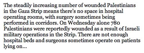 Das per Kaiserschnitt gerettete Baby einer getöteten Palästinenserin ist wenige Tage nach seiner Geburt gestorben. Der behandelnde Arzt teilte mit, dass die kleine Schaima erstickt sei. Dies hänge auch mit den Stromausfällen auf der Intensivstation der Klinik zusammen. Die Sauerstoffgeräte hätten nicht richtig funktioniert, mehrmals habe das Baby per Hand wiederbelebt werden müssen.