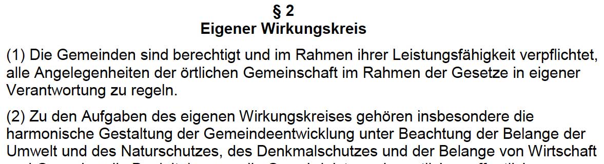 Spontan: Warum handelte die GemeindeVertretung dann seit Anbeginn gegen die Kommunale Verfassung in Sachen Umwelt, Natur und Denkmalschutz(so in ihrer Internetausgabe), warum handelte der Bürgermeister durchgehend aus eigenen Entschlüssen ohne Votum der Gemeinde, deren Beschlüsse er sich danach einholte oder gar nicht. Also sind wohl verbindliche Regeln in der Hauptsatzung dringend lokal und aktuell festzulegen.