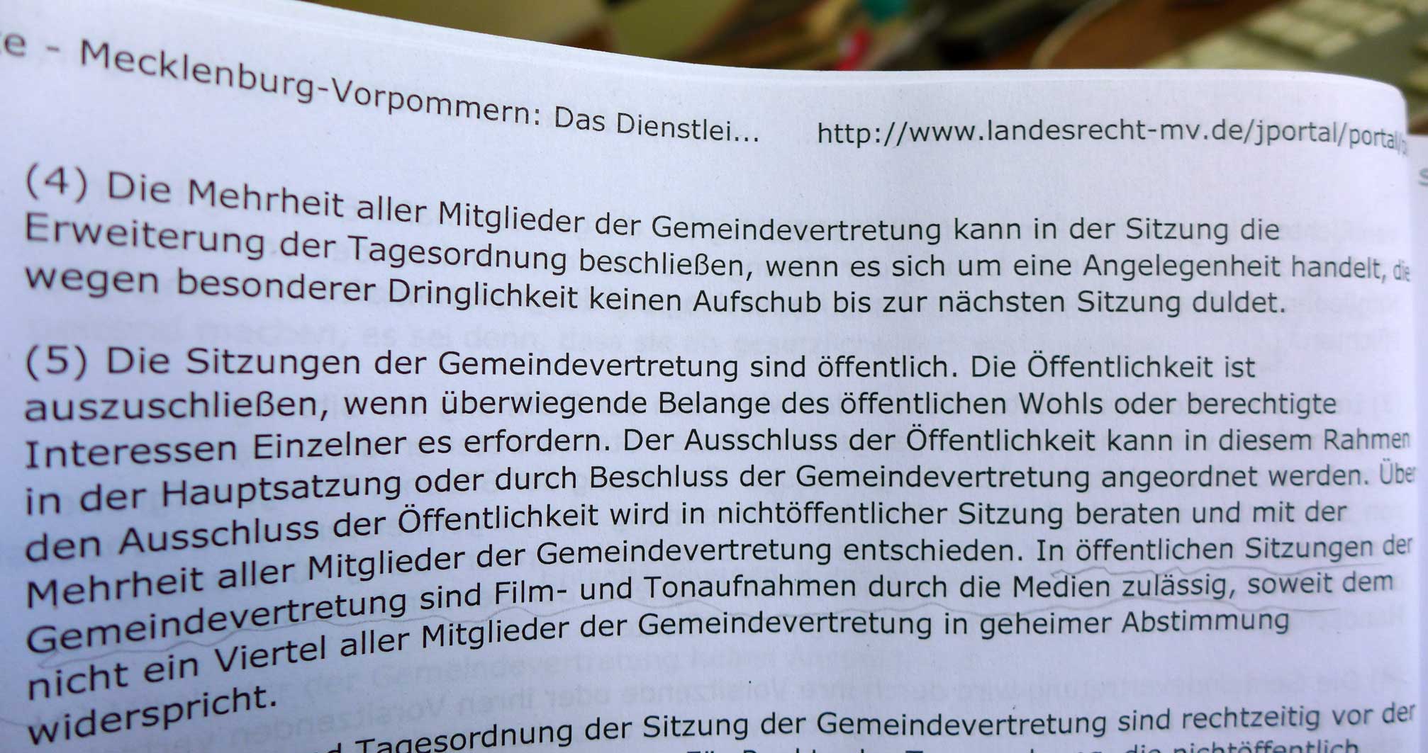 Eine Verfassung des Dorfes, dass jahrelang ohne Umwelt-Sorgen(§2 der Kommunalverfassung des Landes) und ohne Demokratie(§1 KV) durchkam, sollte sich endlich besinnen. Und die Rechtsaufsicht auch. Über 60 Prozent der Bürger gehen nicht mehr zur Wahl - warum wohl. Es ist nicht gut, wenn eine Parallel-Gemeinde entsteht der eigentlichen Taten neben der der Zäune und verschlossenen Türen. Das Amt des Bürgermeisters ist nicht ein lästiger Verwaltungposten, sondern ein Ehrenamt der gesamten Gemeinde von vier Dörfern. Einer an den man sich immer wenden kann, so haben wir es von den Vätern gelernt. Und so soll es wieder werden. Und er steht nicht allein im Raum.