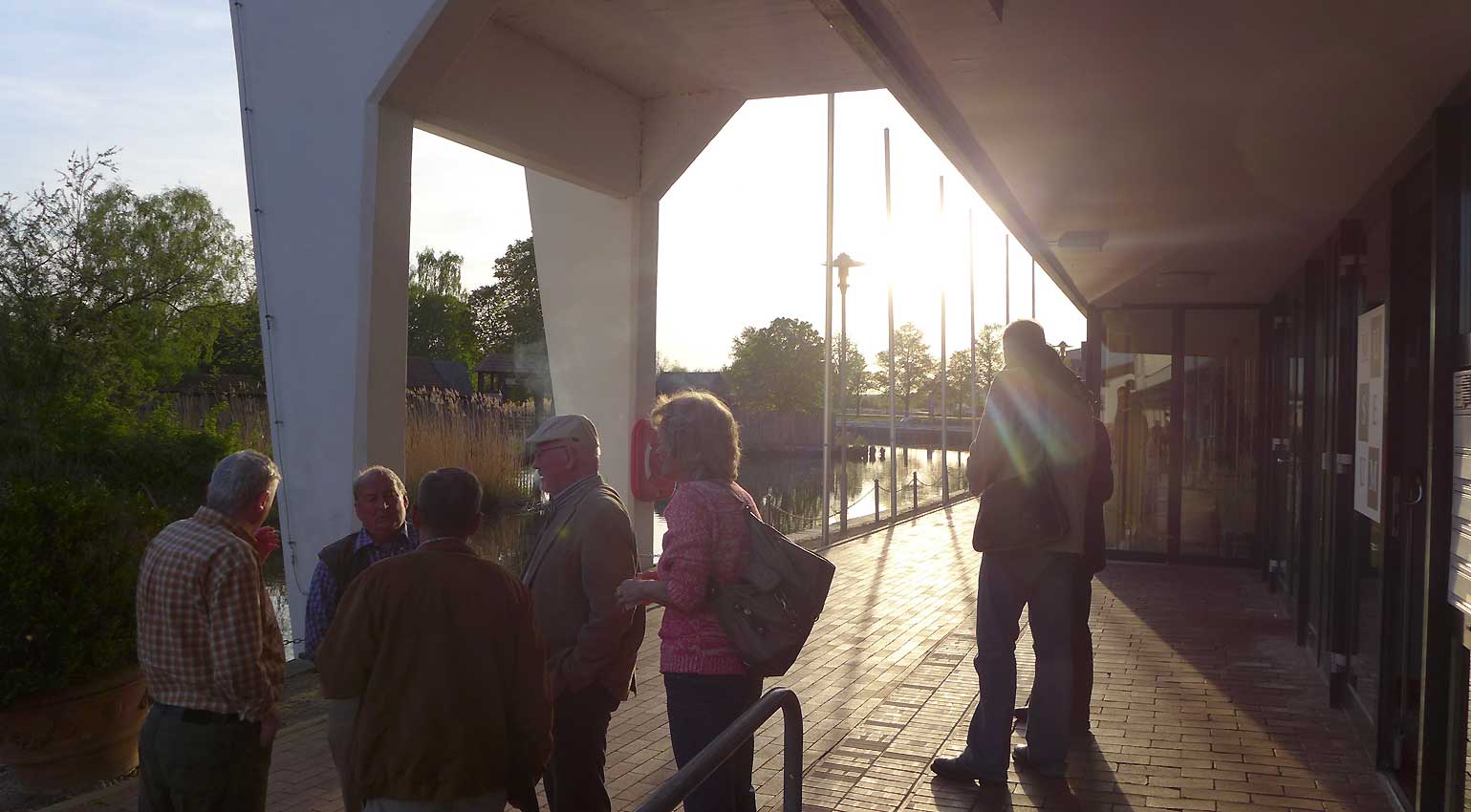 Am freundlichen Abend gehen auch diese Diskutanten unten an wieder sich belebenden Hafen eines friedlich Abends mit gottlob fernem Getöse von Waffen in aller Ohren und Augen. auch heute, auch nachdenklich was dem geschieht, der sich nicht wehren kann.