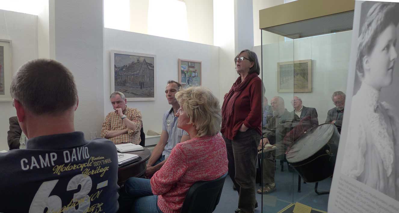 Zusammengekommen waren sie aus dem Kulturausschuss der Stadt, im Regionalmuseum Demmin, um über die Ulanen vor 100 Jahren und ihr Denkmal von 1925 ja oder nein zu sprechen. dazu einige interessierte Gäste.