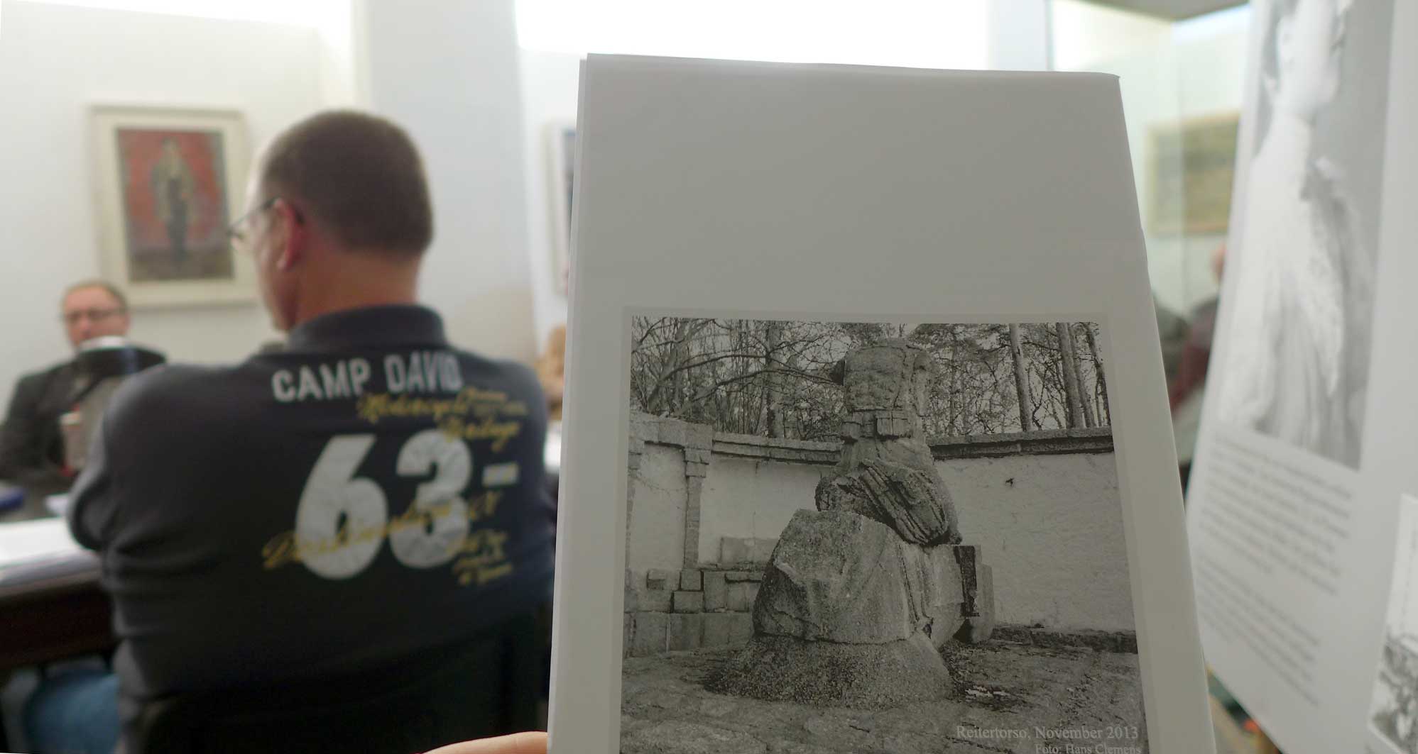 Die nach 1945 beseitigte Reiterfigur, zum Gedächntnis 1925 errichtet und nach 1990 wiedergefunden, die Reste, kann man nun zu verschiednen Jahreszeiten besuchen, wer es beschmiert sollte bedenen, dass auch sowjetische Panzer in Berlin nicht zu diffamieren sind, was auch immer man zu ihrer Herkunft und Funktion denken mag. Sie werden nur beschmiert, wenn wir es insgeheim wollend zulassen.