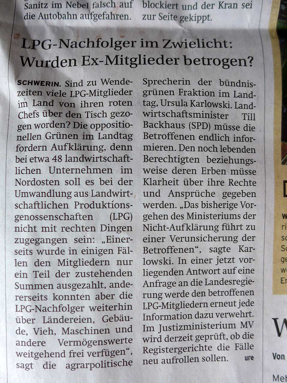 Aber sie brauchen eure Stimmen, wenn sie Geld wollen von den Ämter aus Brüssel, für ihre Wege: zur Trebel von Nossendorf, in Volksdorf, in Medrow zu ihren Häusern.
