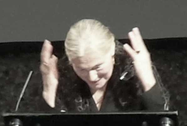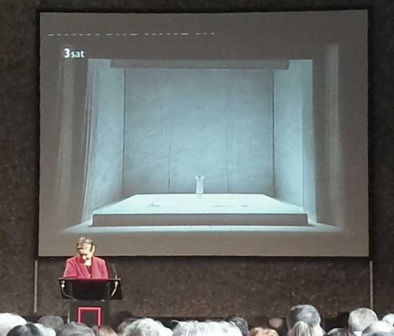 "Für mich ist reale Gegenwart auf dem Theater möglich, unbedingt möglich und erstrebenswert, weil das bedeutet, dass etwas geschieht, was alle anderen ergreift, und es tatsächlich in dem Augenblick eine Realität bekommt, aber eine ganz andere als unsere Realität, von der eben gesprochen wurde."