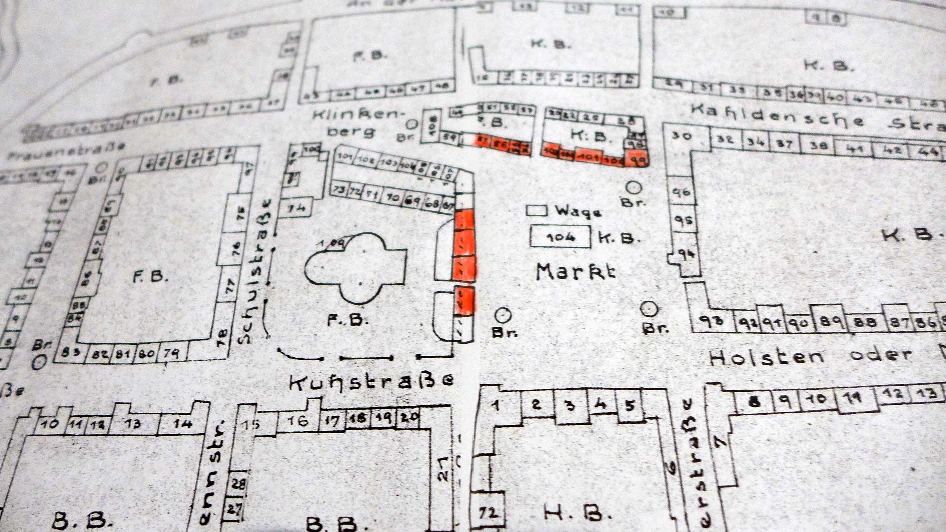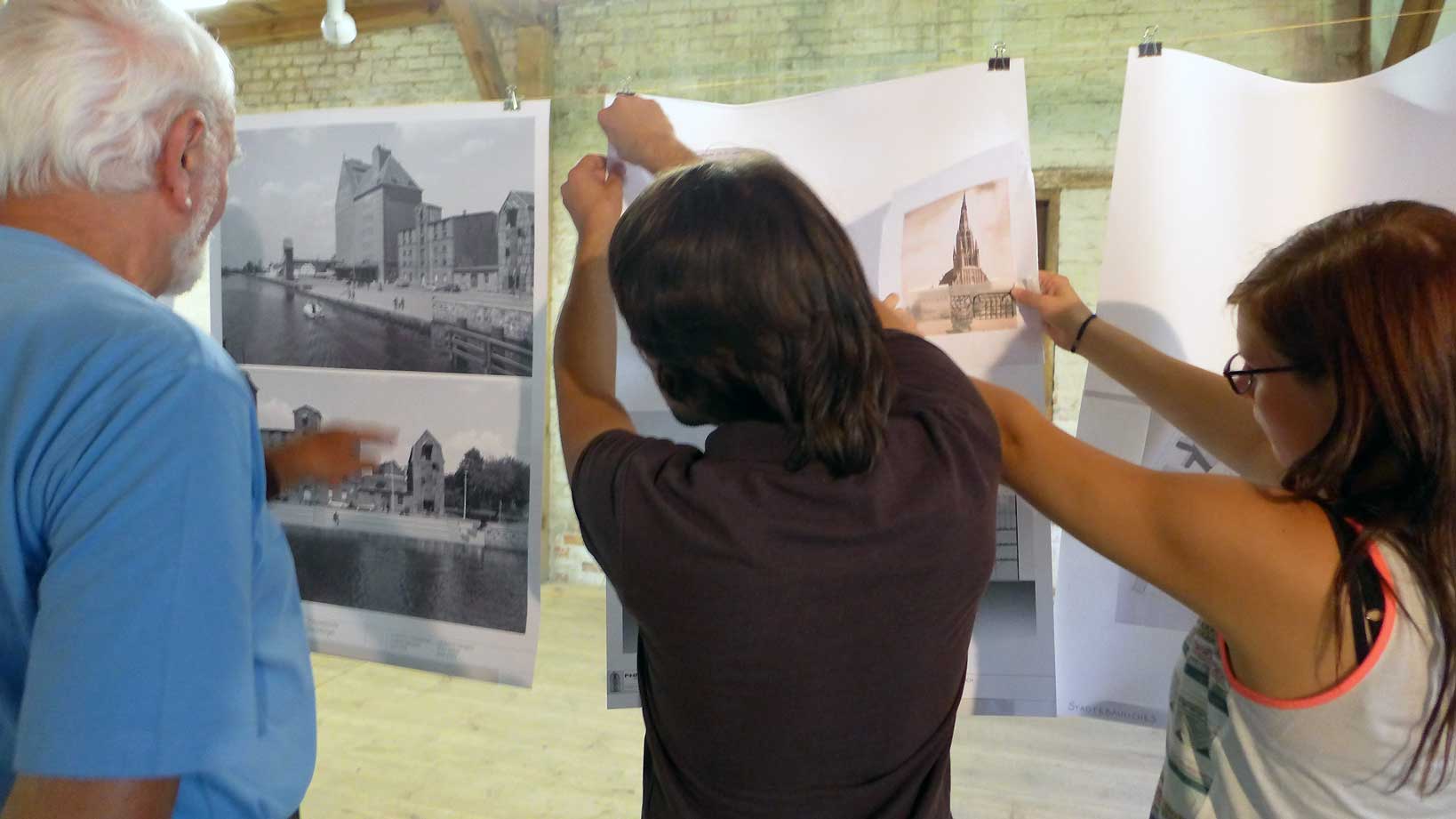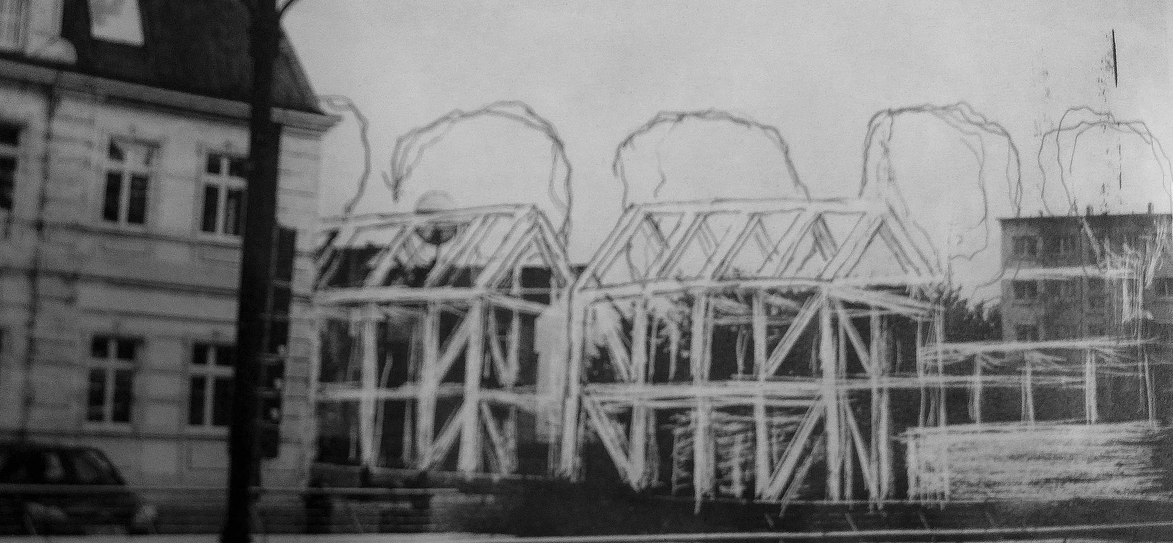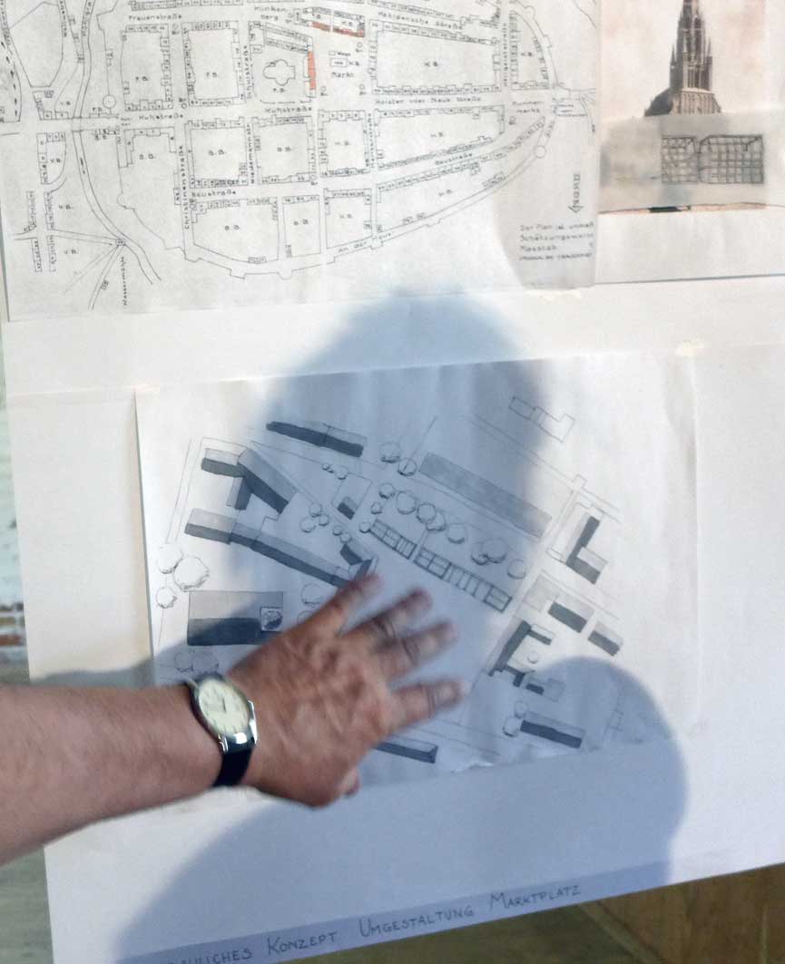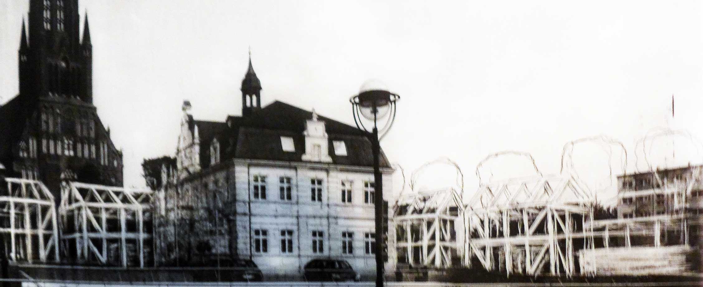 Der Marktplatz in Demmin reizte zu Konzepten mit wieder entfernbaren Bauteilen als Installation zu zeigen, wie das war. In die alten Pläne hineinkopiert. Den Raum nochmal zu schaffen eines Marktes im Norden