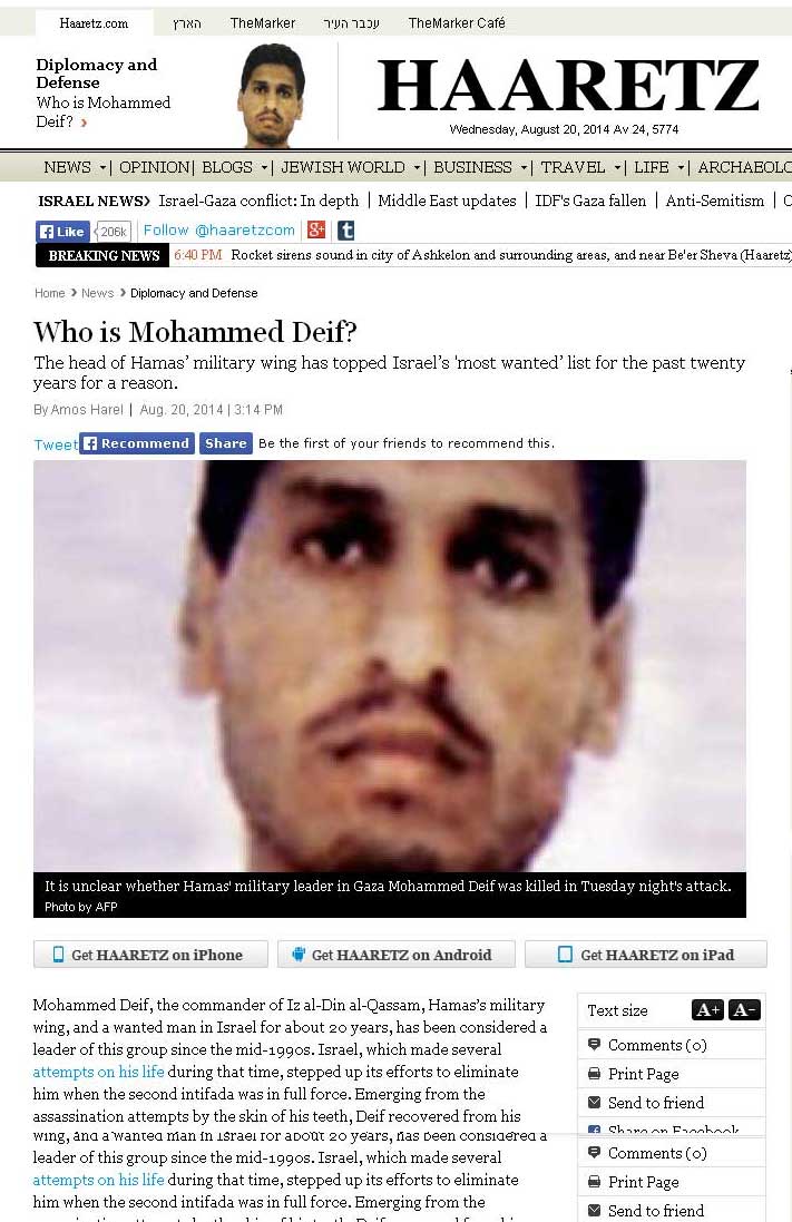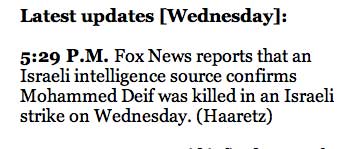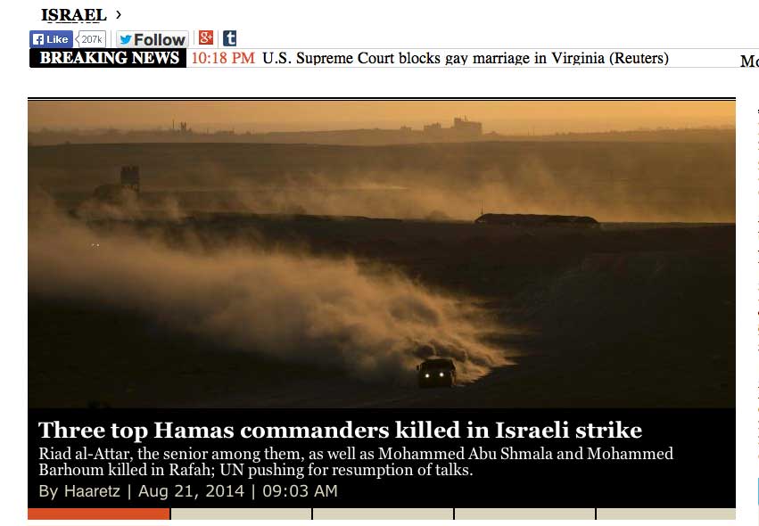 8:54 A.M.ÊHamas says three of its commanders from the Izz A-Din Al-Qassam Brigades in Rafah were killed overnight in an Israel Air Force strike: Ra'ad al-Attar, the senior among them, as well as Mohammed Abu Shmala and Mohammed Barhoum. (Jack Khoury)