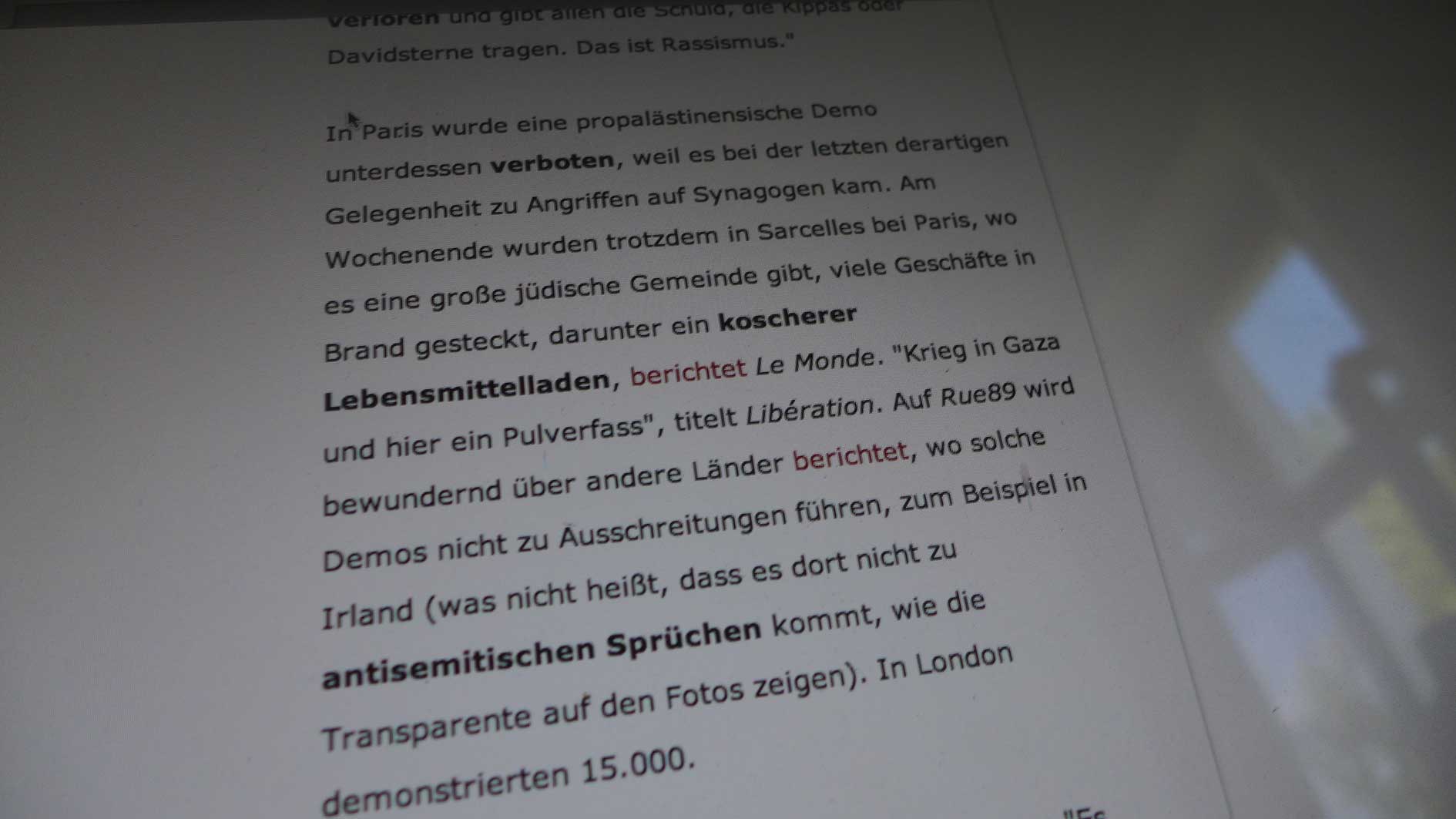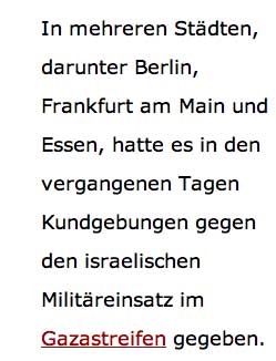 Berlin (dpa) – Der israelische Botschafter in Deutschland, Yakov Hadas-Handelsman, hat sich entsetzt über antisemitische Parolen bei Kundgebungen in Deutschland im Zusammenhang mit dem Gaza-Konflikt geäußert. Die Meinungsfreiheit werde von Islamisten, Rechts- und Linksextremisten dazu missbraucht, eine Kultur des Hasses und der Gewalt in die deutsche Debatte zu importieren, schrieb er in einem Beitrag für die «Berliner Zeitung». Bei Palästinenser-Demonstrationen waren Hetzparolen gegen Juden gerufen und Steine auf Polizisten geworfen worden. In Berlin musste die Polizei einen Juden vor Angriffen schützen.