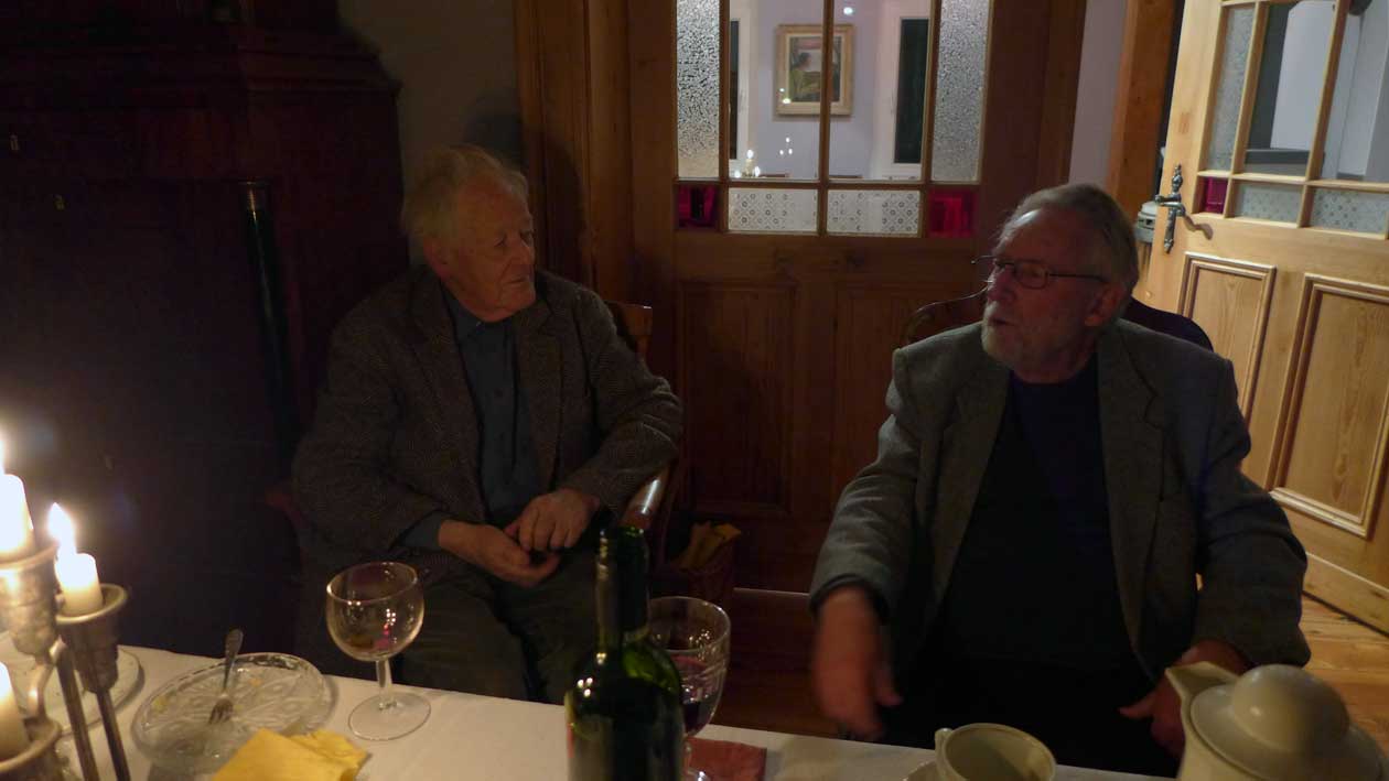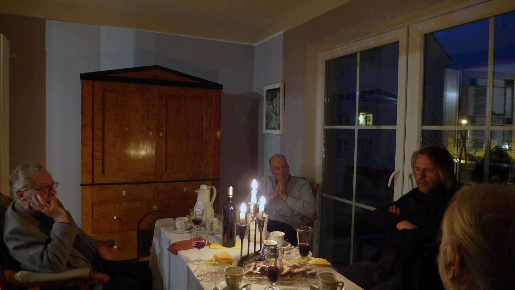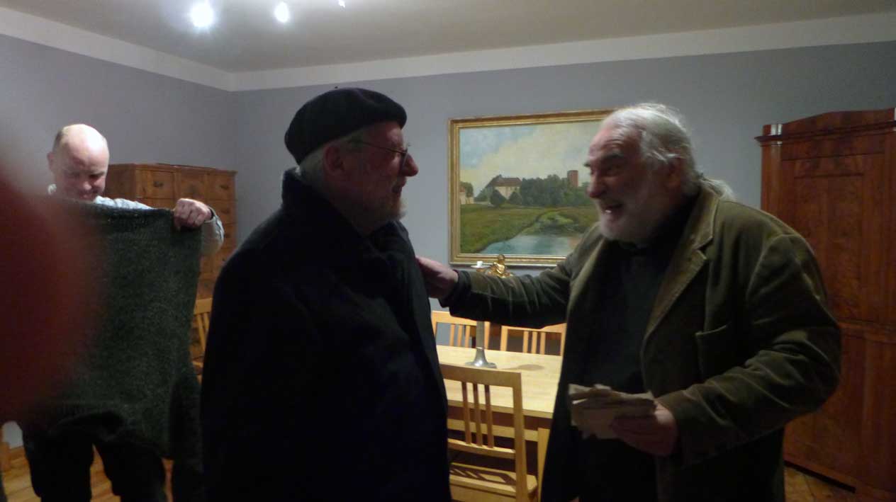 sonst wie immer W. Esch- bei ihm - und Clemens vom Museum der Ecke am Bahnhof unter der Linde gedenkend wo ir noch hin müssen dann und auf dasHaus Demmin woher die Äpfel kommen für den Kuchen noch ein Glas