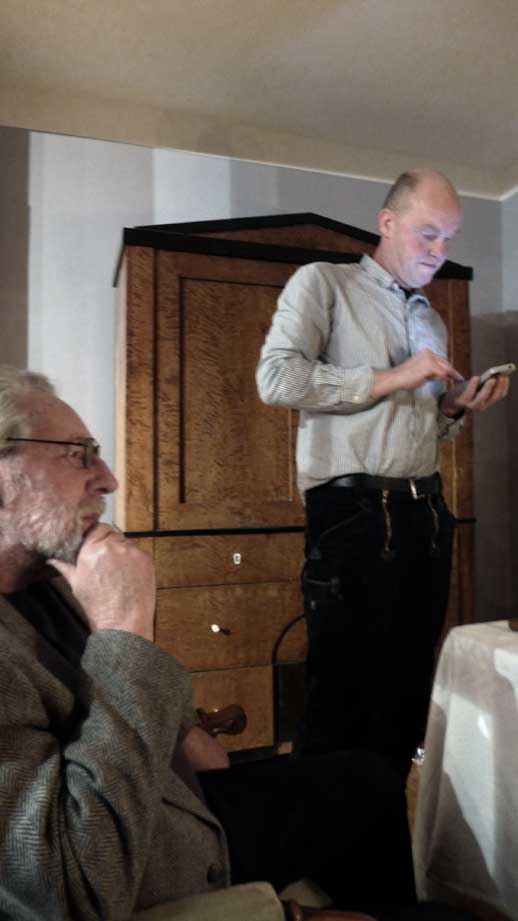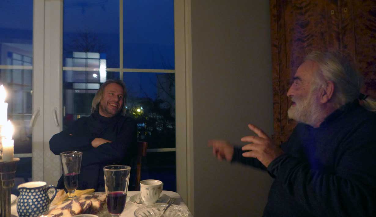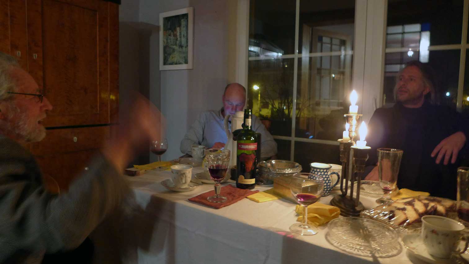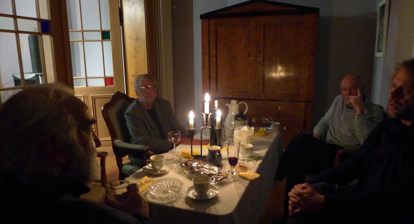 sonst wie immer W. Esch- bei ihm - und Clemens vom Museum der Ecke am Bahnhof unter der Linde gedenkend wo ir noch hin müssen dann und auf dasHaus Demmin woher die Äpfel kommen für den Kuchen noch ein Glas