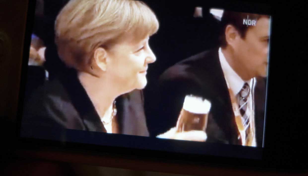 und wie die Merkel eins drüber kriegt, das Bier bei Aschermittwoch in Demmin