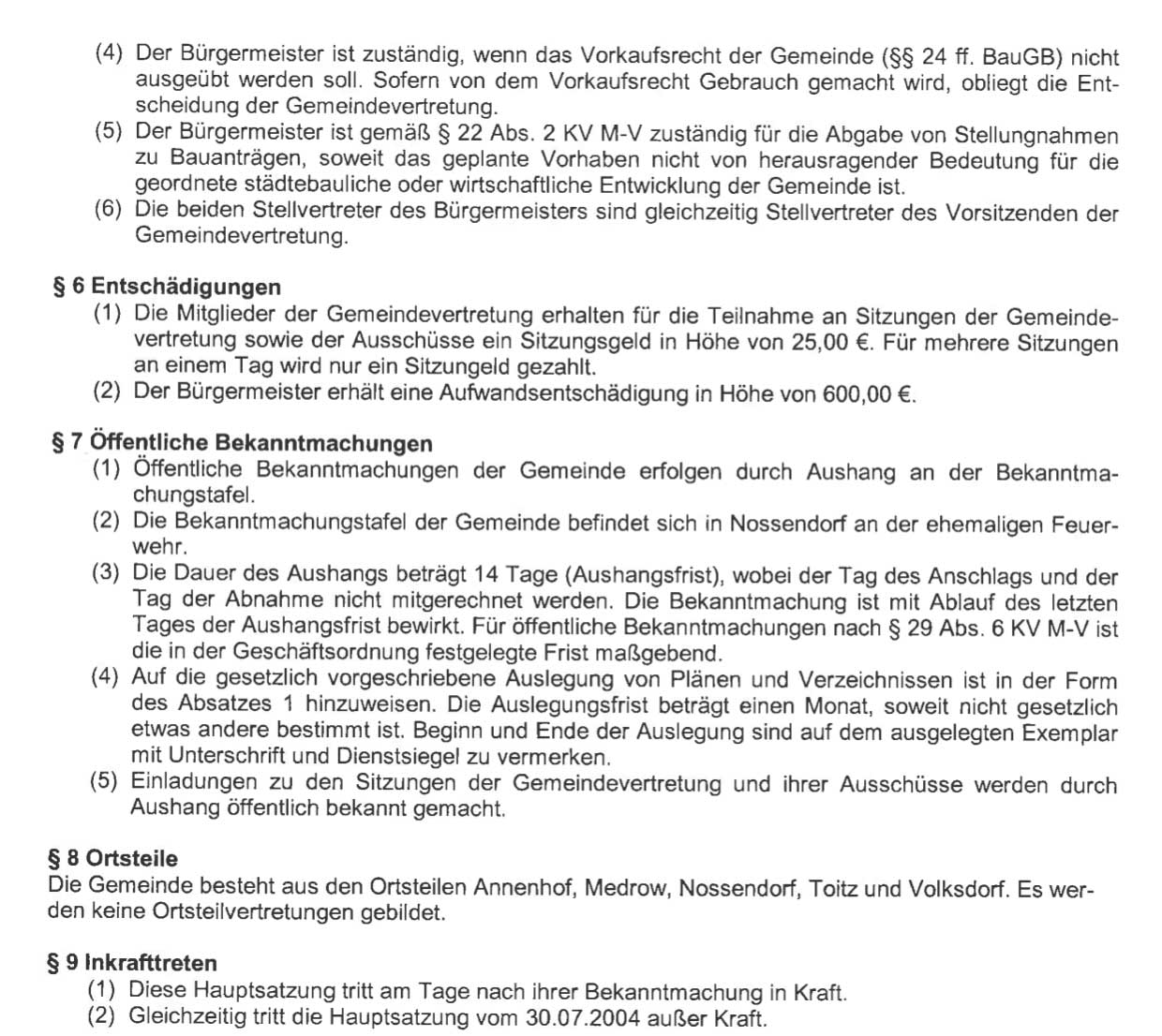 laut Internet Gemeinde Nossendorf.de: