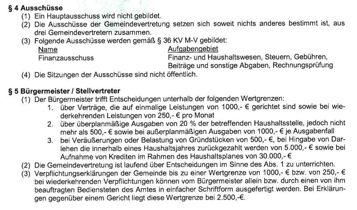 Nach der Kommunalverfassung des Landes Mecklenburg-Vorpommern.