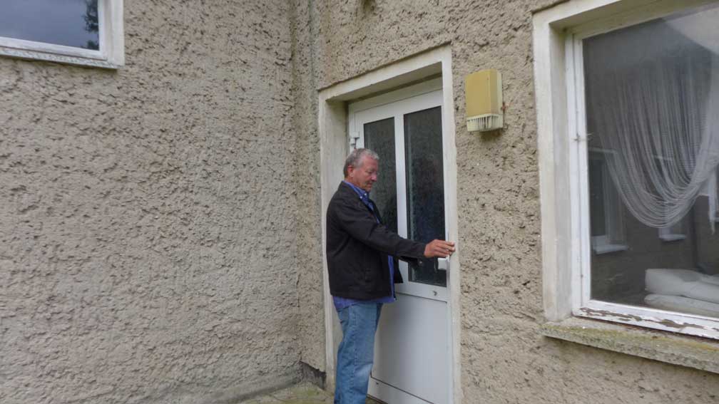 mit auf lautes Pochen geöffnetem Fenster die Mitteilung des noch Bürgermeisters: "Sie nicht Herr Syberberg". Dazu die Aufforderung das Fotografieren zu unterlassen.